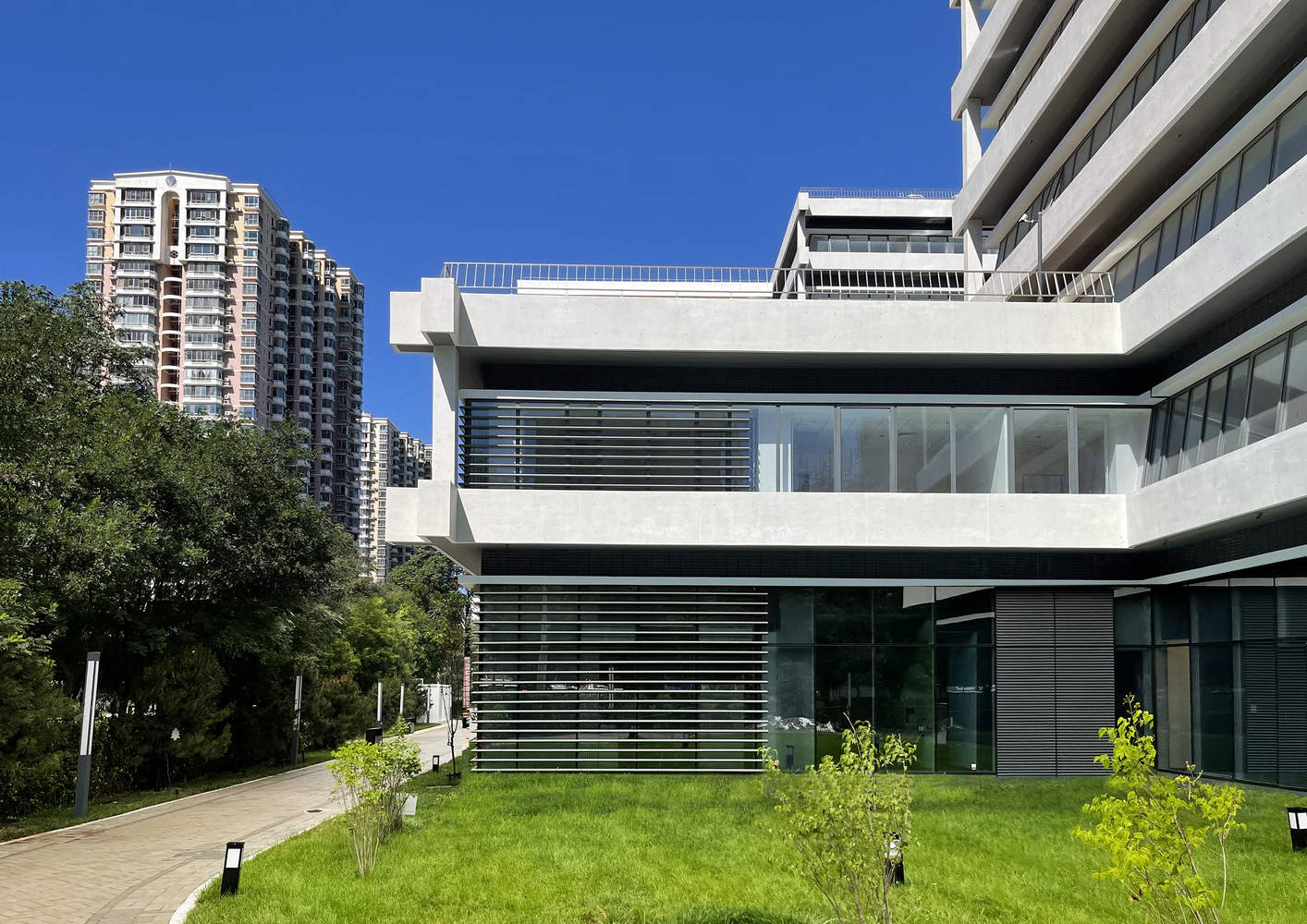 The gray tiles, gray walls, and wooden components reflected in Beijing's hutongs, old streets, and quadrangle courtyards establish the main tone of Beijing's urban color. Gray and wooden colors return to simplicity and are the most common and Chinese architectural colors in Beijing. Revealing the rich, simple, and peaceful cultural heritage of the ancient capital. The building is mainly composed of plain concrete, wooden boards (Pares board), wood veneered louvers, and gray clay bricks. The extensive use of wooden veneers indoors is intended to create a peaceful and healing environment.