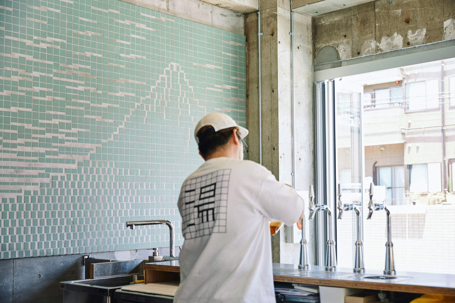 I once vaguely saw tiles pieced together in old public bathhouses in Kyoto and other cities, gradually feeling a sense of dissonance. When I recognized the patterns of different tiles, the moment I said 'Aha', I wanted to do something similar. We have customized three sizes of square tiles: 47x47mm, 97x97mm, and 47x97mm, and arranged them alternately as cleverly as possible.