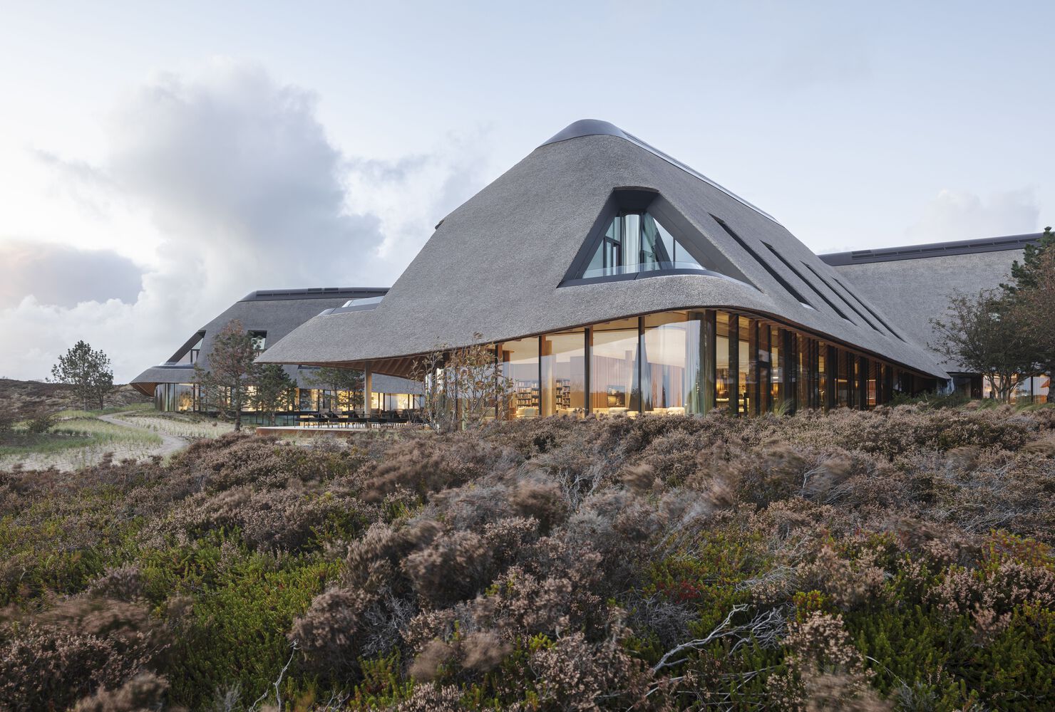We designed buildings that harmoniously coexist with nature for Lanserhof and simplified them to the most basic level, which is our definition of luxury today, "said Christoph Ingenhoven. The beauty of sand dune landscapes shapes design. The new Lanserhof hotel is part of this landscape. The previous development in the region led to the birth of a new hotel: it was built on a military site in the 1930s. In addition to the listed military officer residences, it also includes the newly completed main building, three seaside villas, and a diagnostic building. Even from a distance, the overhanging thatched roof of the new building leaves a deep impression. These buildings together form the largest thatched roof in Europe, covering an area of 7100 square meters.