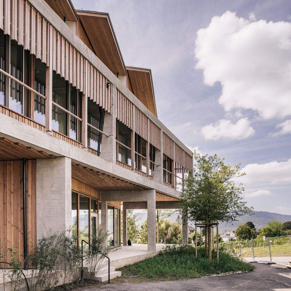 这座研究与教学楼矗立于精心设计的景观之中,独立于一片果园内,与布尔格霍尔兹利(Burghölzli)众多花园中的果园相仿。建筑本身采用抽象而清晰的几何语言,所用材料简约。挑出的阳台配有高耸的白色栏杆,使建筑显得既稳重又轻盈。儿童医院的两座设施虽风格迥异,却相辅相成。研究教学楼位于山坡上,其圆形设计将视线引向湖面。而急症医院则呈狭长水平状,与平坦的景观融为一体,从医院可眺望后方的山峦。医院关注每一位患者的个体需求,这意味着不仅要关注治疗过程,还要关注患者家属及医护人员的福祉。研究与教学楼则强调科学家与学生之间的交流与合作,这是前瞻性研究的先决条件。