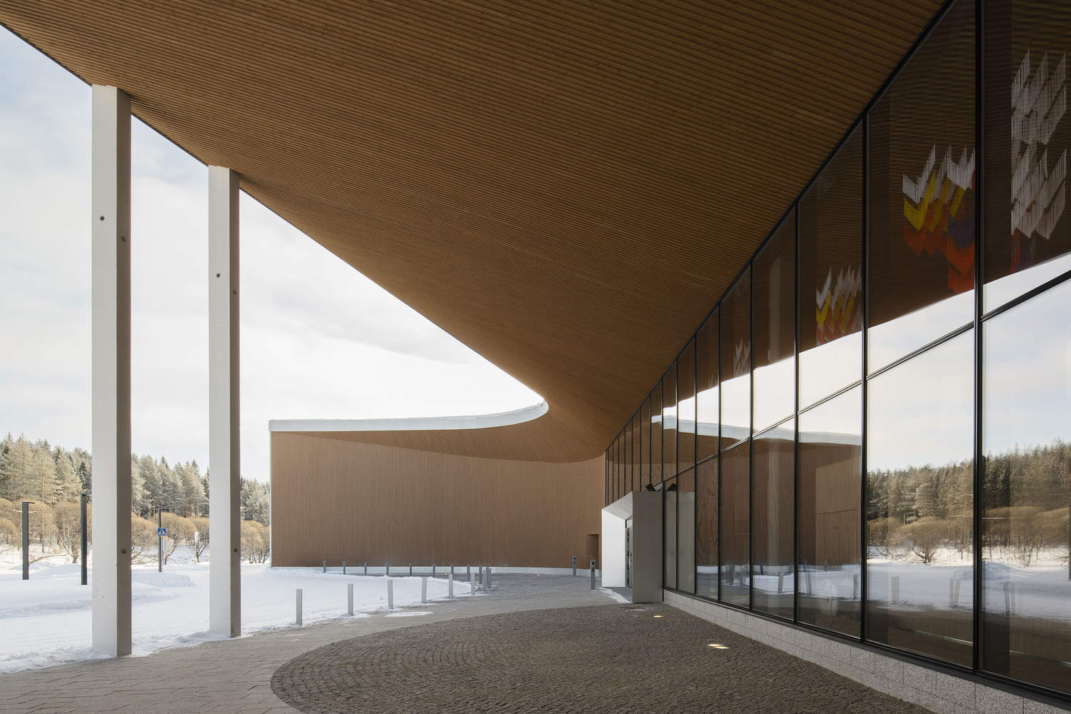 The revised layout of the hospital campus is based on creating a new east-west internal connection as the unified backbone of space and functionality for the plan. The building conveys humanitarianism and patient-centered care, while evoking people's impressions of Lapland's nature. Materials, spatial solutions, and natural light create a safe and healing environment, providing effective treatment for patients and health services for employees. The implementation of public artworks in the hospital campus has made the surrounding environment vibrant and promoted the recovery of patients.