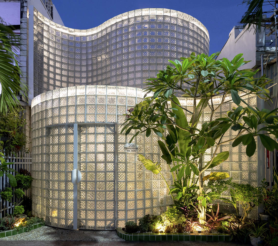 住宅设计利用玻璃砖模仿波浪图案,将越南西部水域形象化,并强调了立面的美学曲线。玻璃砖不仅保证了屋内开放空间的私密性,还提供了充足的自然采光。
