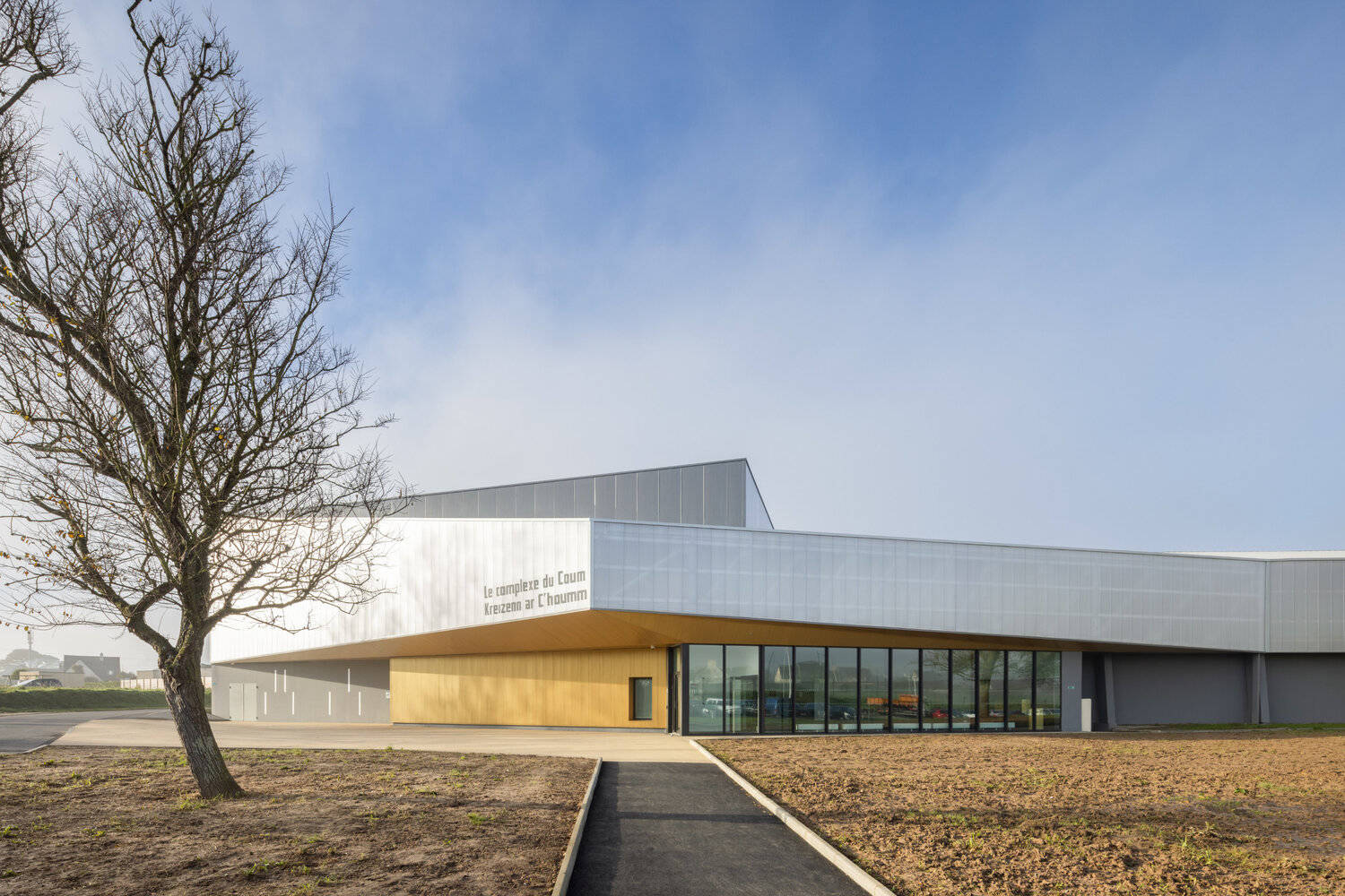 The whole had to reflect the image of sports, active and dynamic, as the ambition of the project was to evoke the desire for sport. The existing building becomes the prop that allows us to deploy the facade tape on the extension gable. The architecture of the project embodies this sporting mission, with a facade that realizes the idea of movement.
