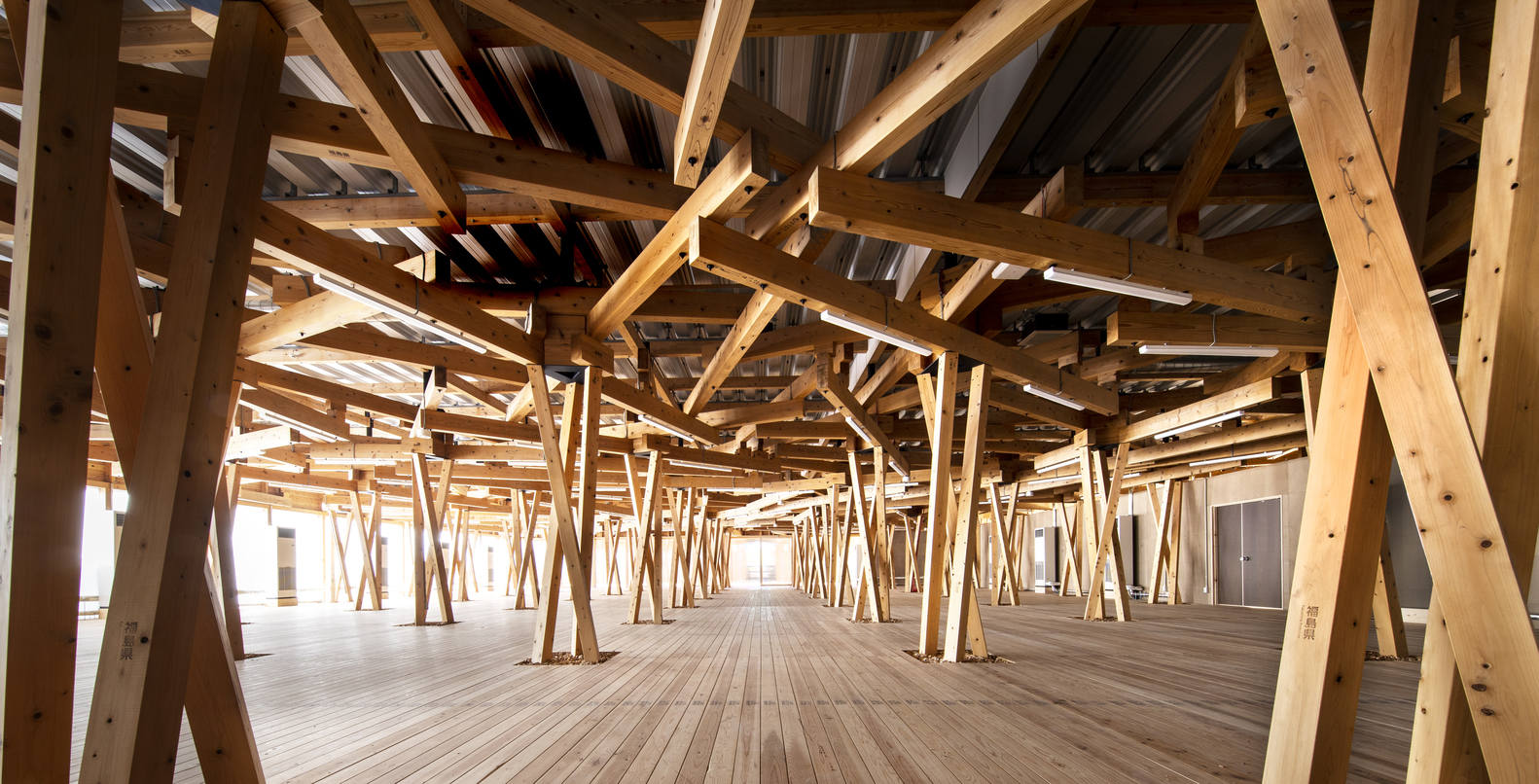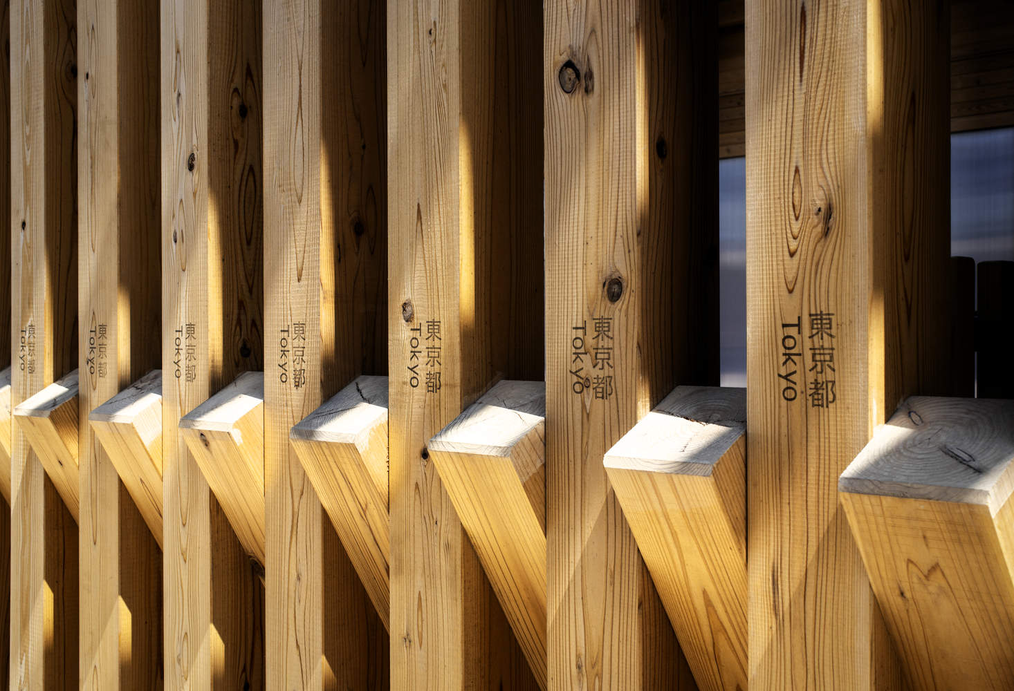 奥运村广场:以全国各地的木材打造庆典空间,举国的木材支援。项目是为 2020年东京奥运会和残奥会在奥运村建造的临时设施,奥运村广场则是运动员、媒体、贵宾和访客交流互动的礼仪式活动空间。