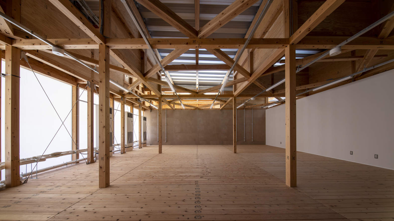 结构追随用途。三种类型的可伸缩框架结构被用于容纳各类设施的使用情境。办公室等小空间采用了格构梁结构,钢支撑与正交和对角的格构梁配对组合以抵抗地震;而不需要隔墙和支撑的大空间则使用了具有三个扭曲对角柱的互惠结构来抵御地震;新闻发布会室则采用了带有树形突出支架的桁架拱结构,以满足大跨度空间的情境需求。