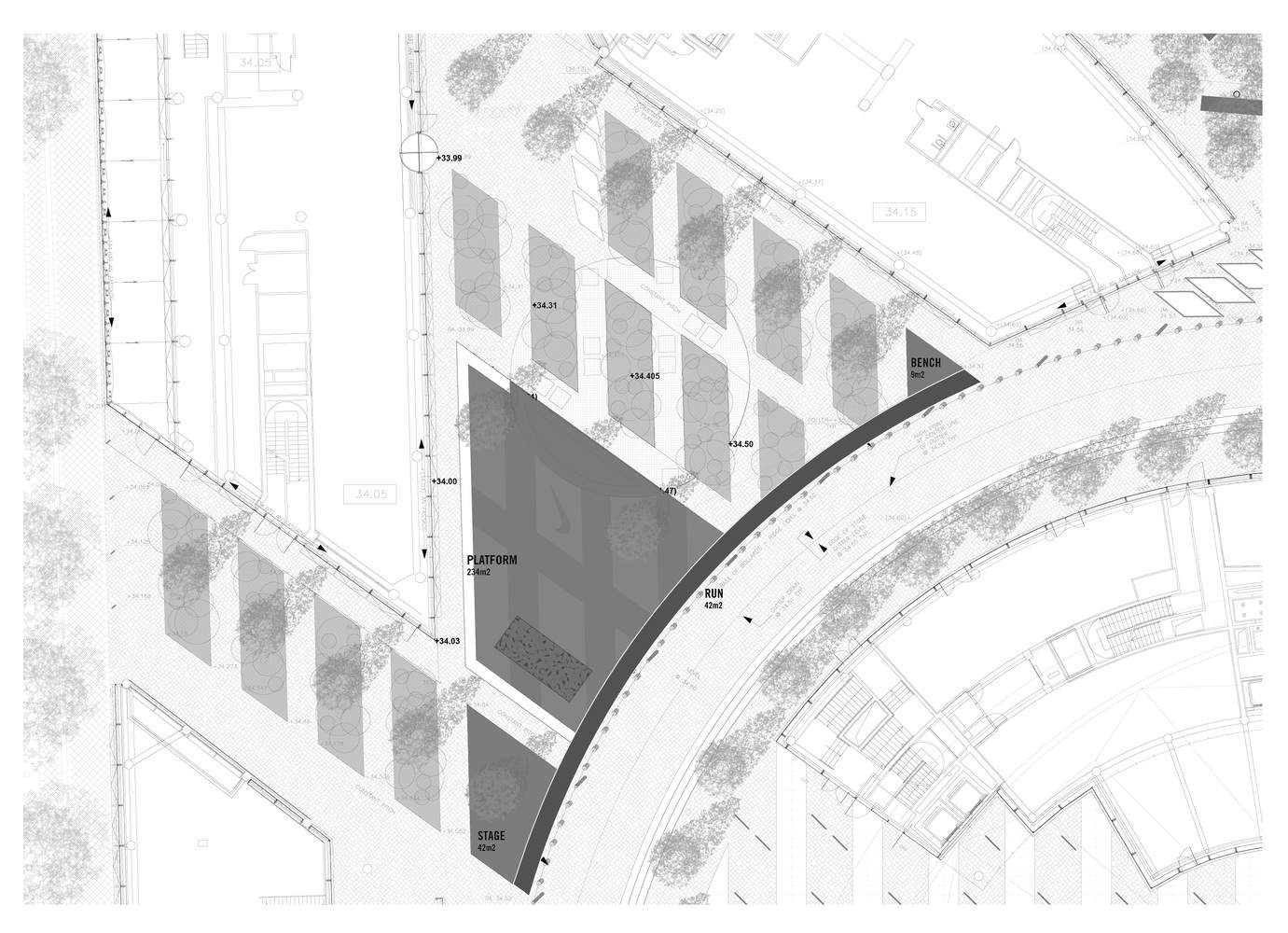 城市脉络的激发与重塑:该项目精准地回应了疫情后城市空间对运动与互动的迫切需求,将原本功能单一的街道景观成功转化为一个动态的、全方位的身体活动场景。它超越了传统体育场的界限,通过巧妙的设计语言,将运动融入市民的日常生活、工作与学习环境,体现了建筑作为激活城市生活重要载体的潜力,是对城市肌理进行积极干预和功能置换的典范。