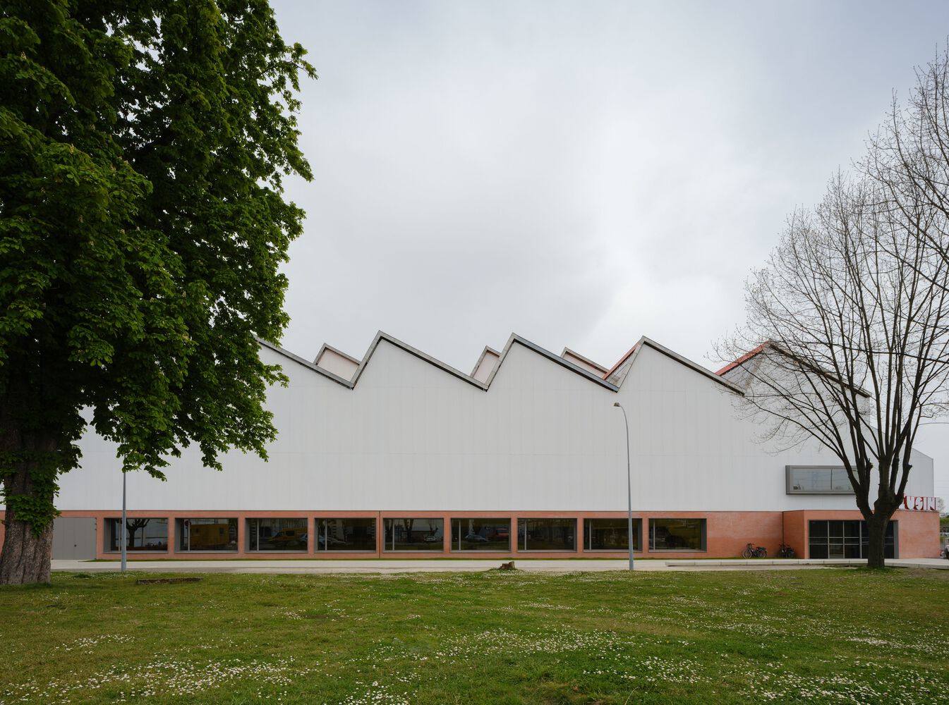 最后,我们的设计为该建筑提供了一个新的立面,包括一个砖基,与附近的建筑相协调,以及延伸到屋顶边缘的白色覆层。 后者是用工业界常用的白色迷你波浪形金属板解决的,其中插入了新的开口,以表达新建筑的公共性,并使其与周围环境的关系更加通透。