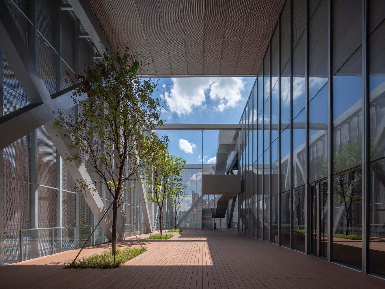 “多孔性”设计与公共空间的渗透:建筑在处理体量感的同时,通过植入大量开放性、渗透性的公共空间,实现了建筑与城市和市民的深度互动。从底层贯通的开放门厅到各层的露台、花园和架空休憩区,这些“多孔性”设计模糊了室内外的界限,鼓励市民全天候使用。这不仅是对深圳湿热气候的积极回应,更是一种“建造逻辑上的透明性”的体现,旨在构建一个开放、包容的文化精神载体。