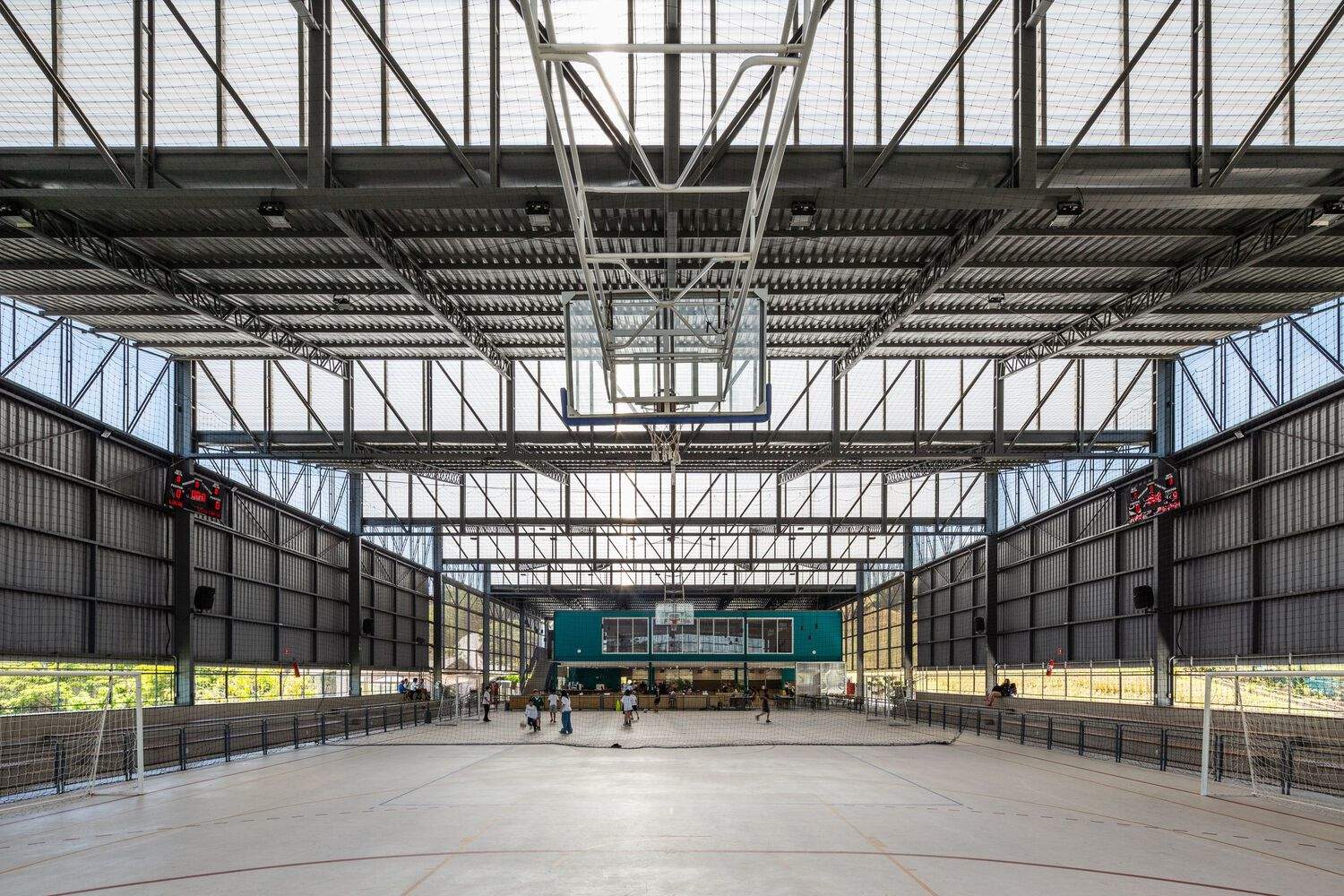 The Castanheiras Arena encompasses 2100 square meters of covered space, including a multi-purpose sports court, an inner court, and a double-layered internal space.