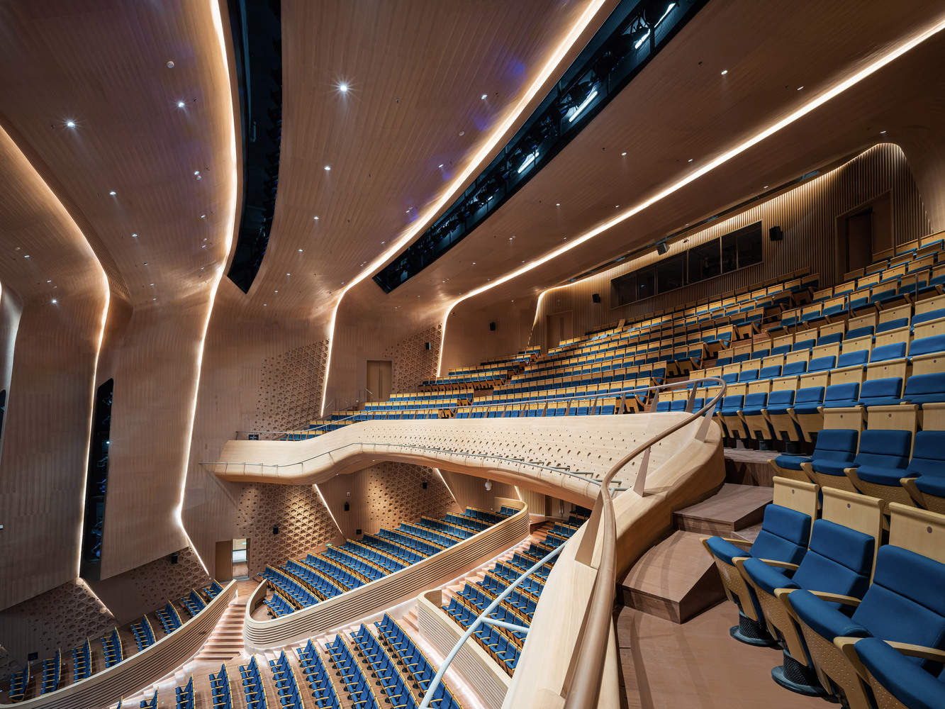 文化语境的现代转译与性能表皮:设计策略上巧妙地融合了地方文化元素与现代建筑技术。主体建筑采用“合而不同”的策略,核心体量强化表现,附属建筑则以六边形编织肌理展开,形成清晰的层次关系。立面设计参考非遗技艺进行现代转译,并通过参数化渐变开孔的幕墙系统,实现了遮阳性能(提升30%-60%)与自然采光的平衡。这种“川味蜀韵”与高性能表皮的结合,展示了传统文化在当代语境下的创新实践。