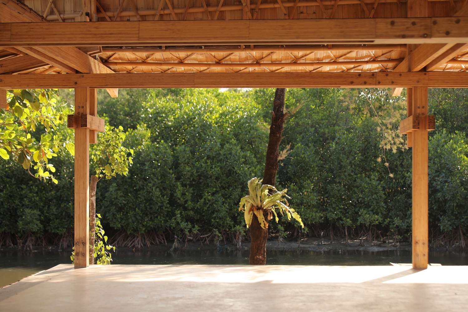 动工前,团队与当地建筑师展开磋商,确保设计贯彻三项原则:使用天然材料、不损害环境、服务社区。项目在奠基与竣工阶段均通过梅鲁阿克(Meruak)仪式祈福。建造过程亦成为培训现场,工人们学习组装层压竹结构,将新材料知识融入本土工艺传统并代代相传。