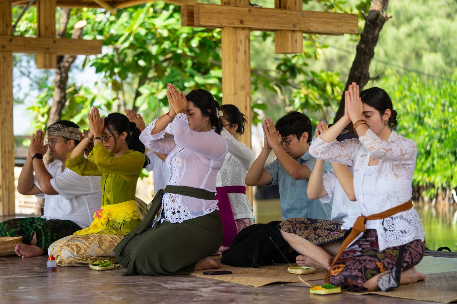 Prior to construction, the team consulted with local architects to ensure the design adhered to three principles: use natural materials, cause no environmental harm, and serve the community. Both the foundation-laying and completion phases were blessed with Meruak ceremonies. The construction process also served as a training ground, where workers learned to assemble the laminated bamboo structure, integrating new material knowledge with local craft traditions for intergenerational transfer.