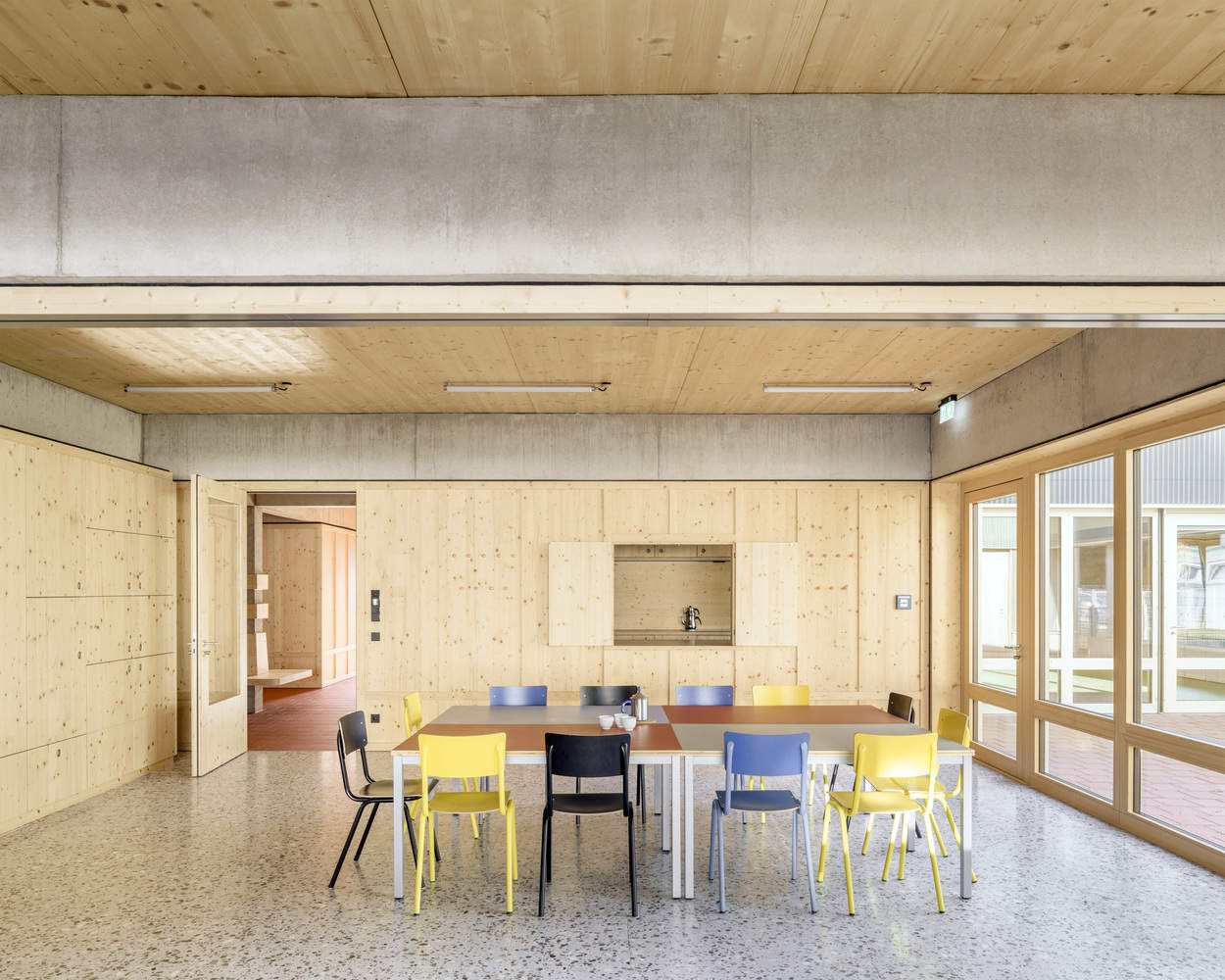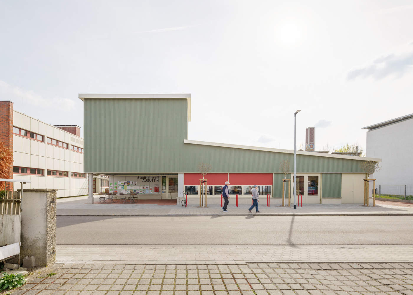 From the architect. A new social meeting point has been created in a diverse working-class community from the 1960s: the Augustin Community Center (Stadtteiltreff Augustin). The site is located between a secondary school, a church, and cooperative housing. The design goal was to create an open, low-threshold, and non-hierarchical space accessible to everyone, regardless of age, background, or social status.