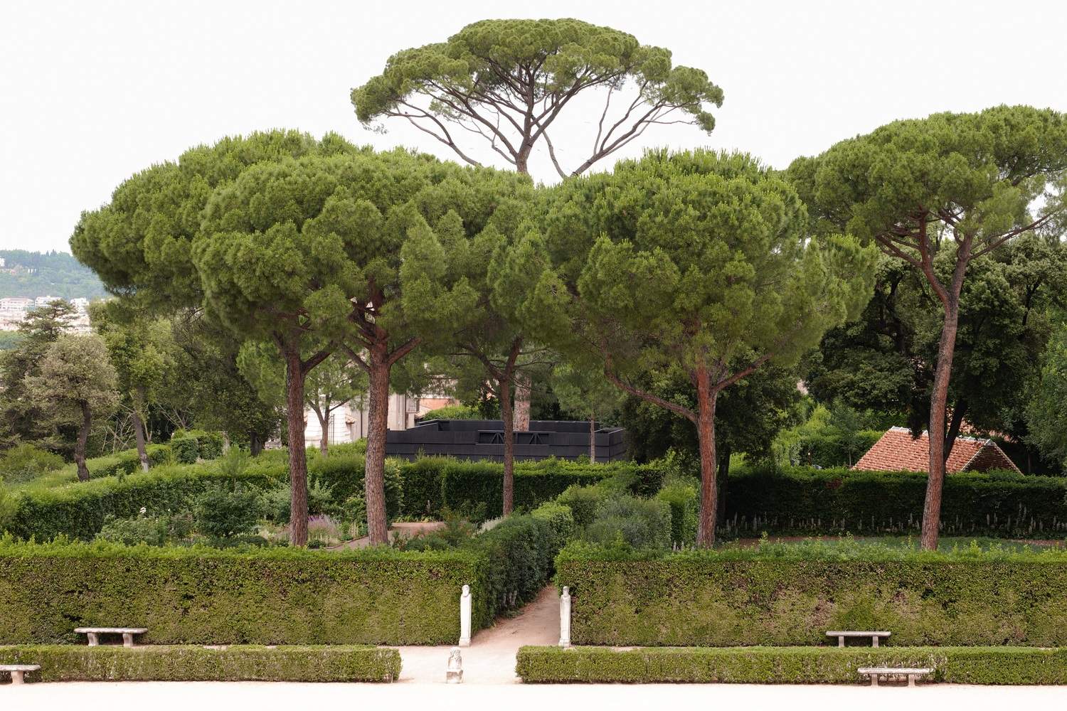 A series of openings are distributed around the entire structure, establishing poetic connections with the surroundings: some frame views of the city of Rome, others allow glimpses of a corner of the Villa Medici, and yet others bring the ancient pine tree or natural elements of the garden into sight.