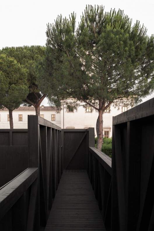 整个项目周边分布着一系列开口,这些开口与周围环境形成了富有诗意的关联:有的开口框出了罗马城的景致,有的则让人得以窥见美第奇别墅的一角,还有的则将古老的松树或花园中的自然元素引入视线。