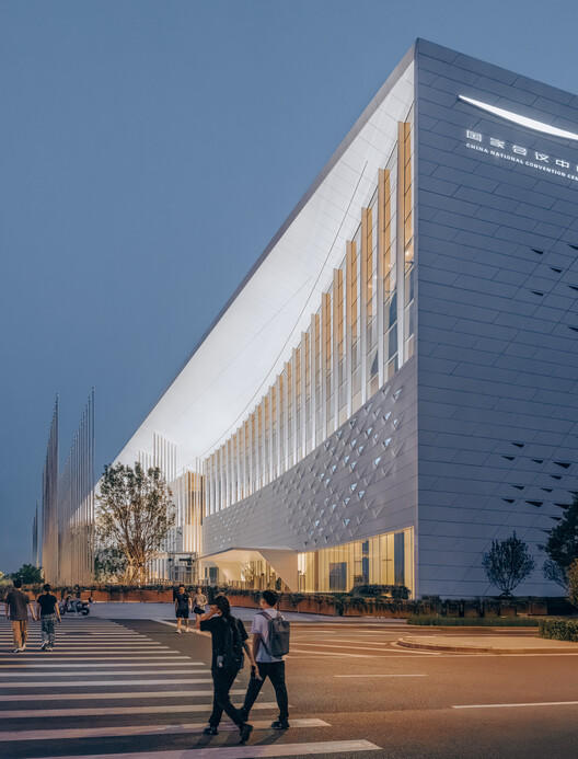 The China National Convention Center Phase II, designed by 2Portzamparc, has recently been officially put into use. As a convention center integrating exhibition and reception functions, Phase II aims to host future international conferences and heads of state summits. The building uses light, curved forms and a perforated facade to dissolve its overall massive volume, presenting an image of soaring birds. Beijing is structured around a central axis, established from the founding of the Yuan Dadu, running north-south through Tiananmen Square and the Forbidden City; after the Olympics, this axis extended north, linking the Bird's Nest, Water Cube, Olympic Park, and the first phase of the National Convention Center, forming the "Olympic Axis." Officially opening in 2025, the second phase injects new vitality into this axis; it is both an extension of the first phase’s functions and an enhancement of the national image.