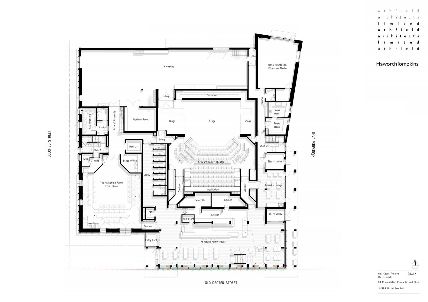 3. Assisted Passive Ventilation and Cooling – The foyer and main theatre spaces feature an assisted passive ventilation and cooling system. Developed from Haworth Tompkins’ experience in the UK, this system is adapted for New Zealand’s conditions. With acoustically treated vents and externally visible chimneys, the main auditorium can benefit from natural cooling during performances when external temperatures are suitable.