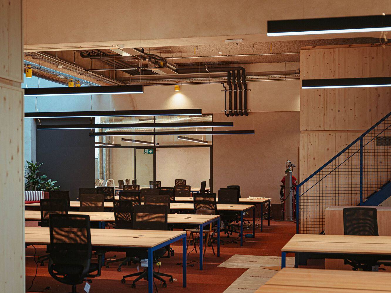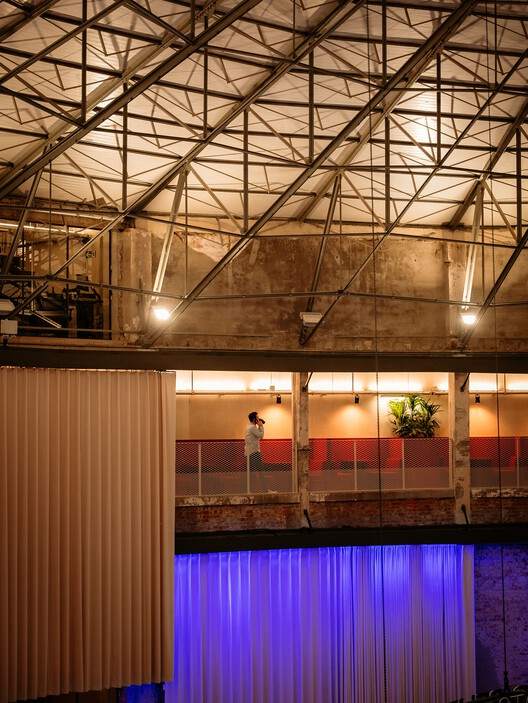 The team of architects designed the interior layout for over thirty workspaces for tech startups, as well as a large multi-functional hall, two spaces for exhibitions and conferences, and two gastronomic facilities. Thus, by using colors and materials that evoke the spirit of the circus, this renovation project provides event venues for an audience gathered by curiosity and entrepreneurial spirit. OYO Architects explained: "For us, it was important to fit the building to a human scale, using warm materials to make it feel intimate and approachable." The core area of the campus is the "Arena," a multifunctional space intended for various activities, from product presentations to art installations. Through this renovation, OYO highlighted the industrial character and iconic qualities of the site, prioritizing its adaptability. Furthermore, a set of movable neon light installations placed in the "sky" area of the site is particularly noteworthy.