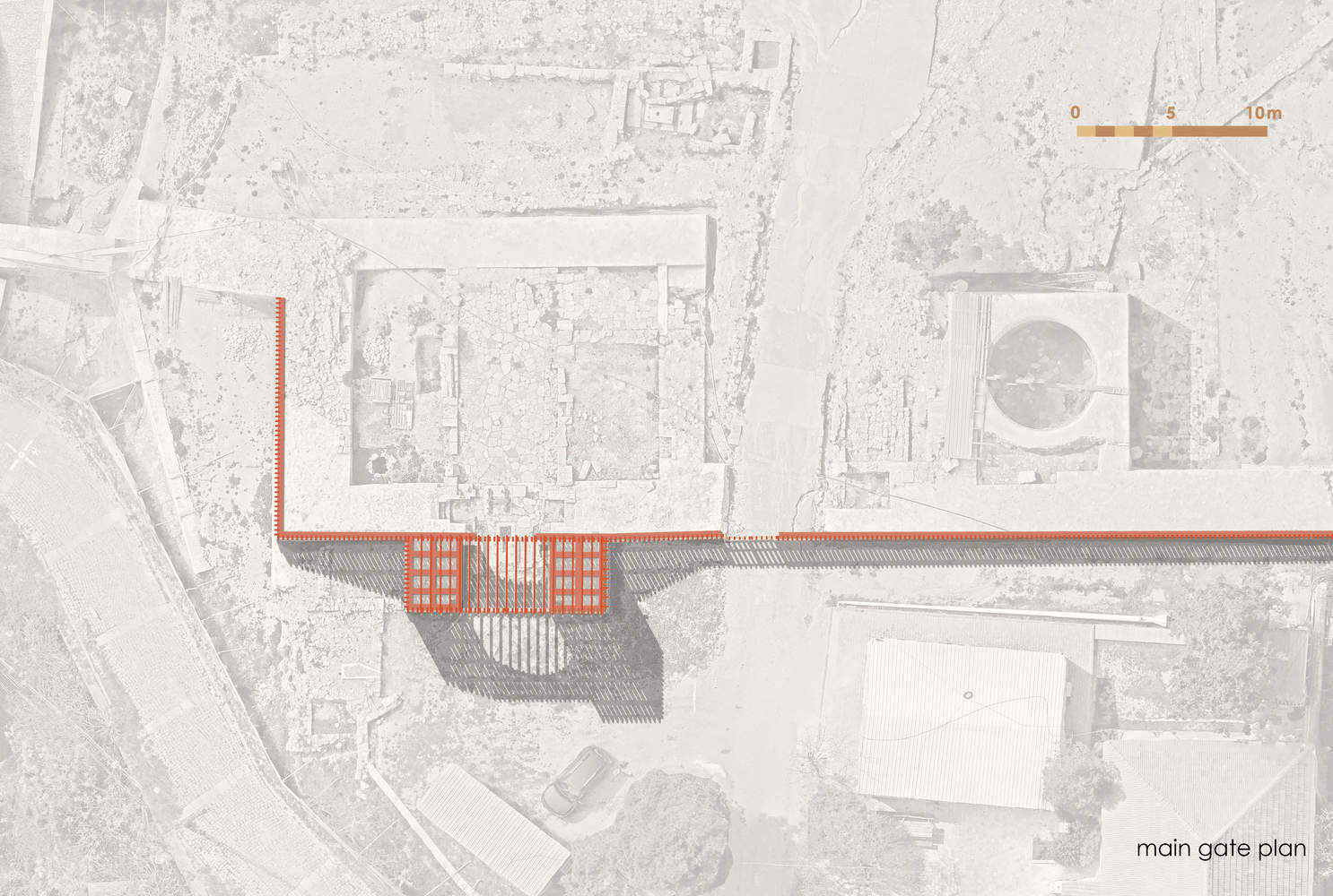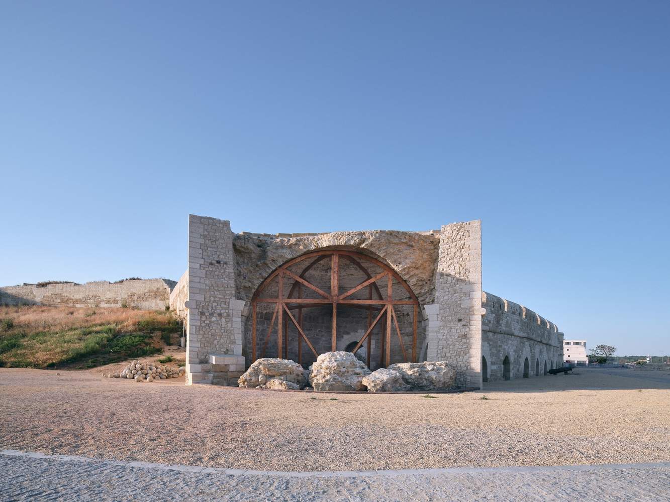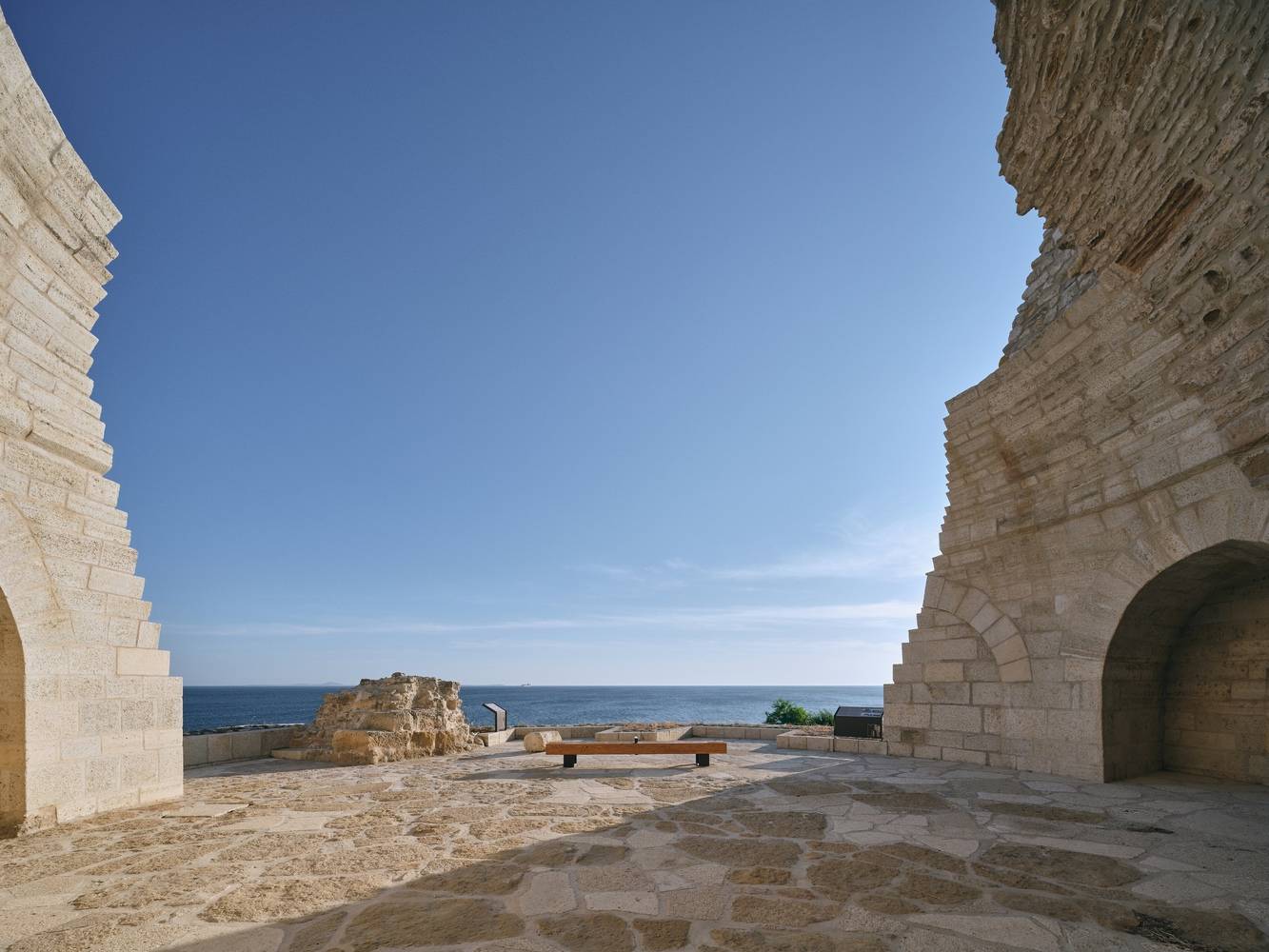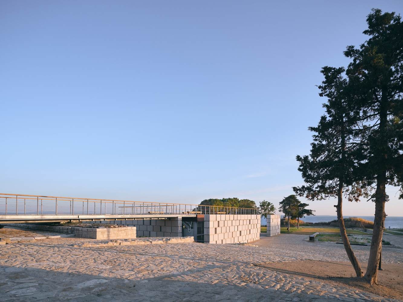 A new museum building has replaced the concrete barracks abandoned in the 1960s, exhibiting archaeological finds from the site, including an Ottoman-era road that runs through the museum building itself. Here, the newly constructed masonry walls echo the original masonry techniques of the Ottoman city walls, effectively reducing the visual impact of the new building on the historical landscape.