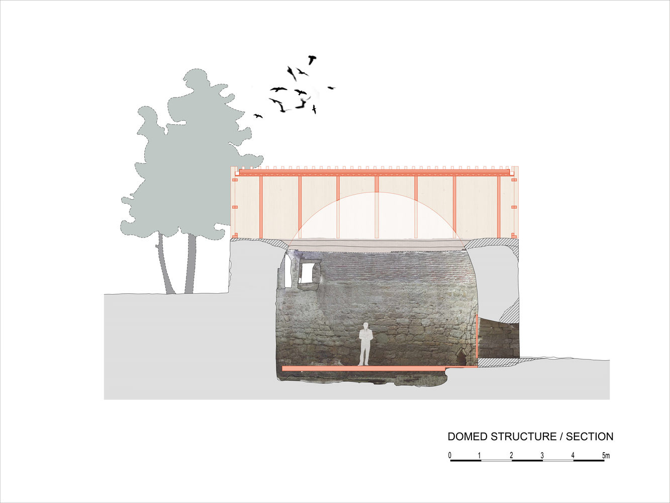 “记忆之场”的构建与叙事:项目在空间上成功地构建了一个“记忆之场”,通过对战争创伤的保留和对和平的反思进行叙事。通过将部分塔楼完整保留为废墟,明确标识了战争留下的印记,强化了对历史毁灭性的警示作用。新插入的元素,如透光的木结构入口和融入考古发现的博物馆,既满足了现代功能需求,又以一种谦逊的方式将访客引导至历史核心,使得空间不仅是纪念地,更是激发对和平思考的场所。