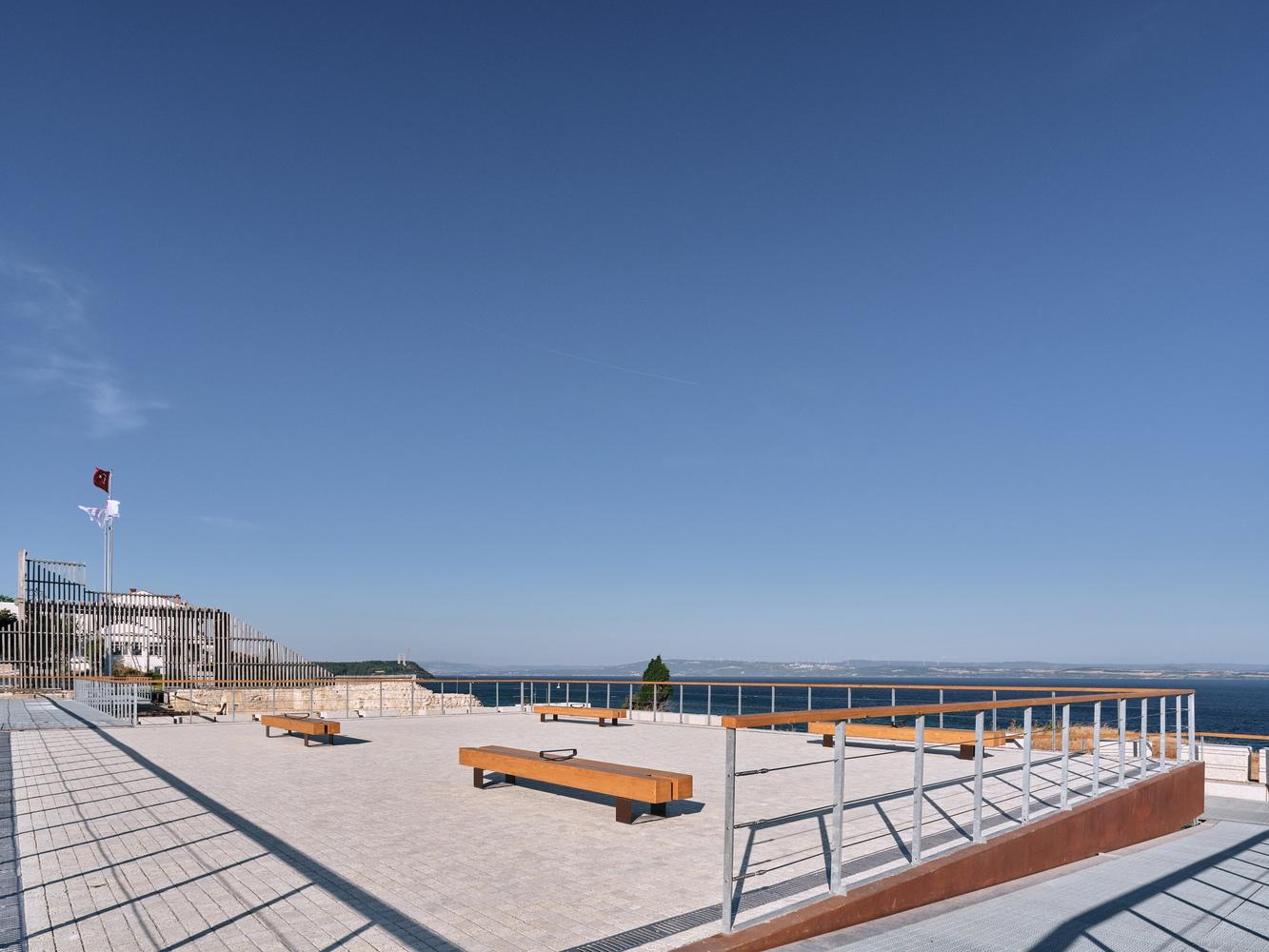 Today, the Gallipoli Peninsula has become a National Park, dotted with well-maintained cemeteries and pristine, solemn monuments commemorating the soldiers of various nations who perished in World War I. Few traces of the fierce battles of that era remain on the peninsula, only tranquil scenery. The core concept of the Seddülbahir Fortress restoration project is to preserve the destructive memory of WWI and create a space for contemplation of peace. Parts of the fortress, such as the west and south towers, have been preserved in their ruined state, serving as "fields of memory" for the trauma inflicted by war on the architecture and the surrounding landscape.