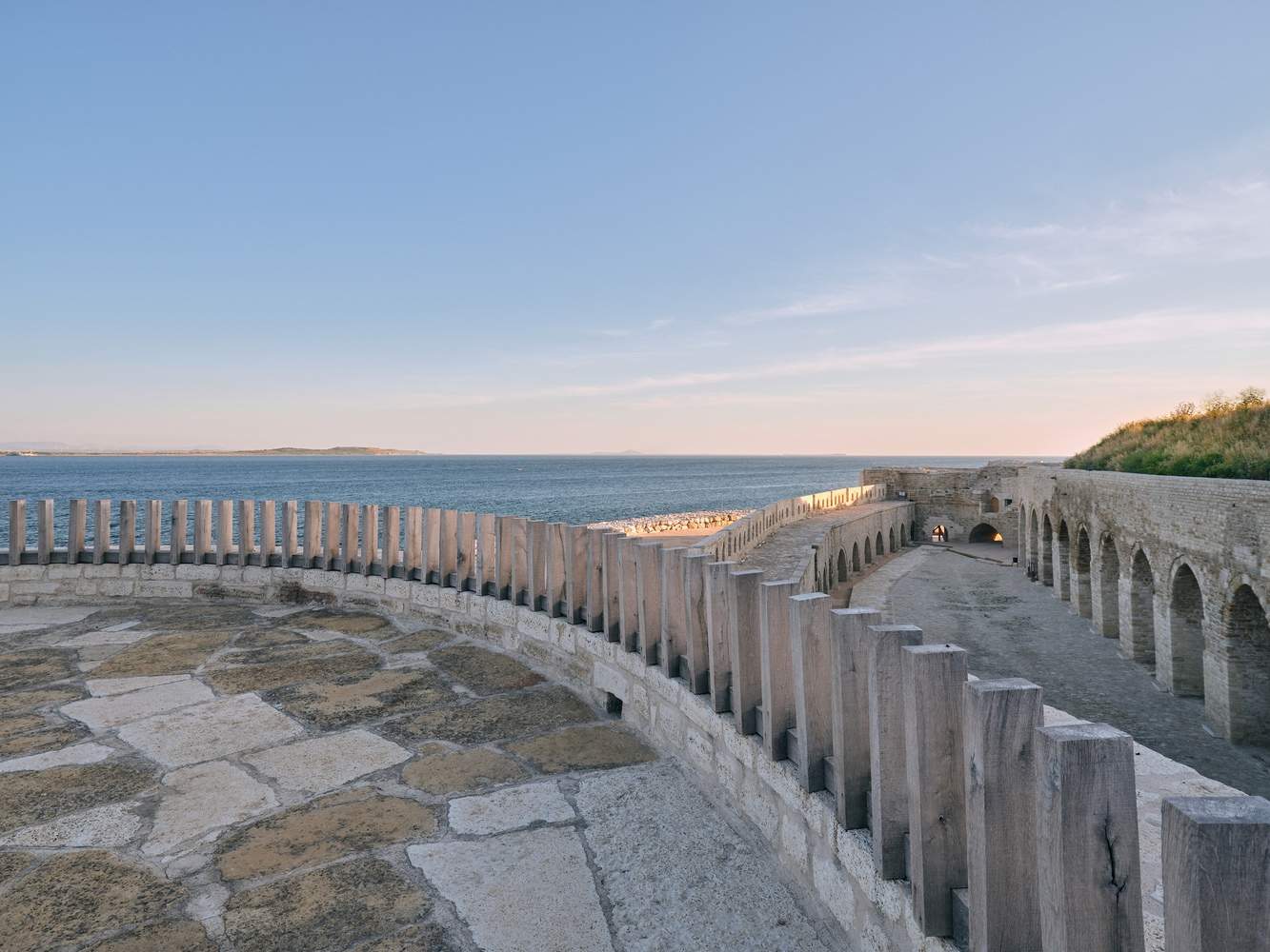 The destroyed parts of Seddülbahir Fortress, such as the main gate and the domed structures, are vaguely outlined with lightweight wooden frameworks—without intentionally recreating—their original appearance. The wooden lattice structure used for the main gate allows sunlight and air, the two essential elements of life, to freely penetrate the fortress entrance. This gate and the domed structure collectively highlight the core value of the "reversibility principle" in the restoration project. The use of contemporary wooden structures within the fortress is extremely restrained, subtly echoing the Ottoman construction techniques across time.