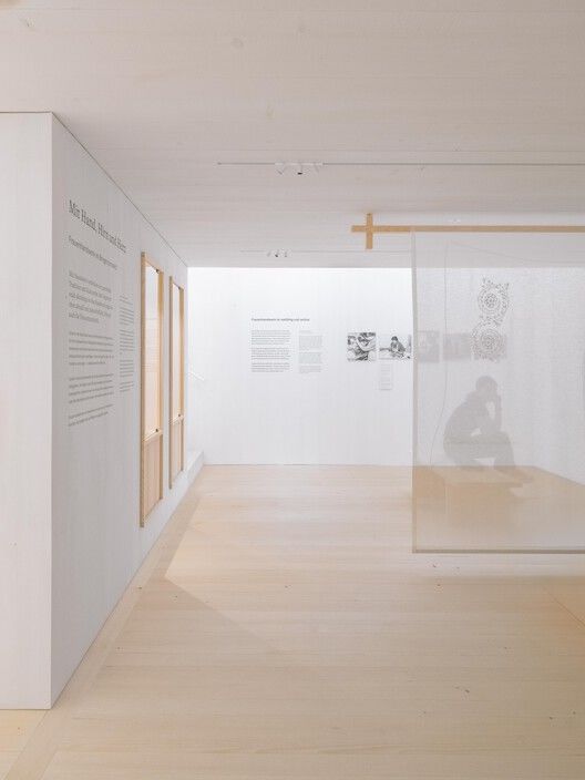 室内,墙壁上刷着白漆的木质护墙板、坚固的云杉木地板以及灰木(或译为“梣木”)家具,共同为种类繁多的历史展品营造出简约而富有氛围感的展示环境。新旧元素之间引人入胜的对话,构成了一个富有深意的整体。