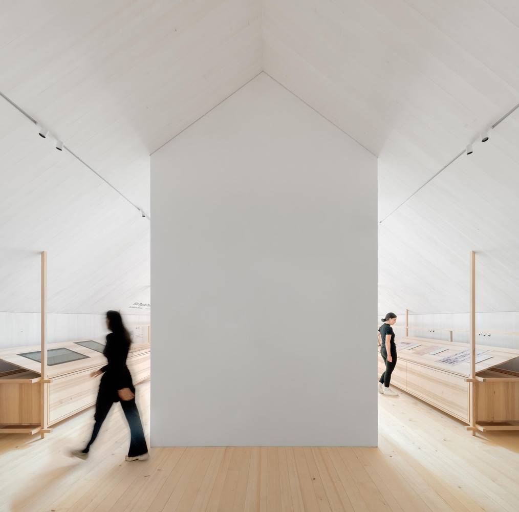 Inside, white-painted wooden paneling, solid spruce floorboards, and ash wood furniture collectively create a minimalist yet atmospheric display setting for the wide variety of historical exhibits. The captivating dialogue between new and old elements forms a deeply meaningful whole.