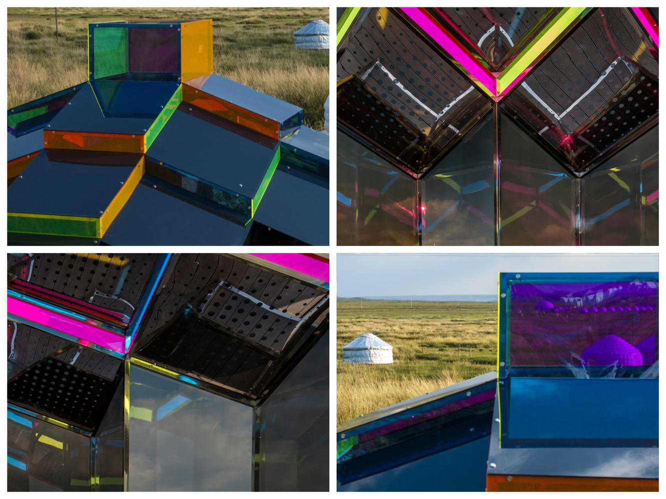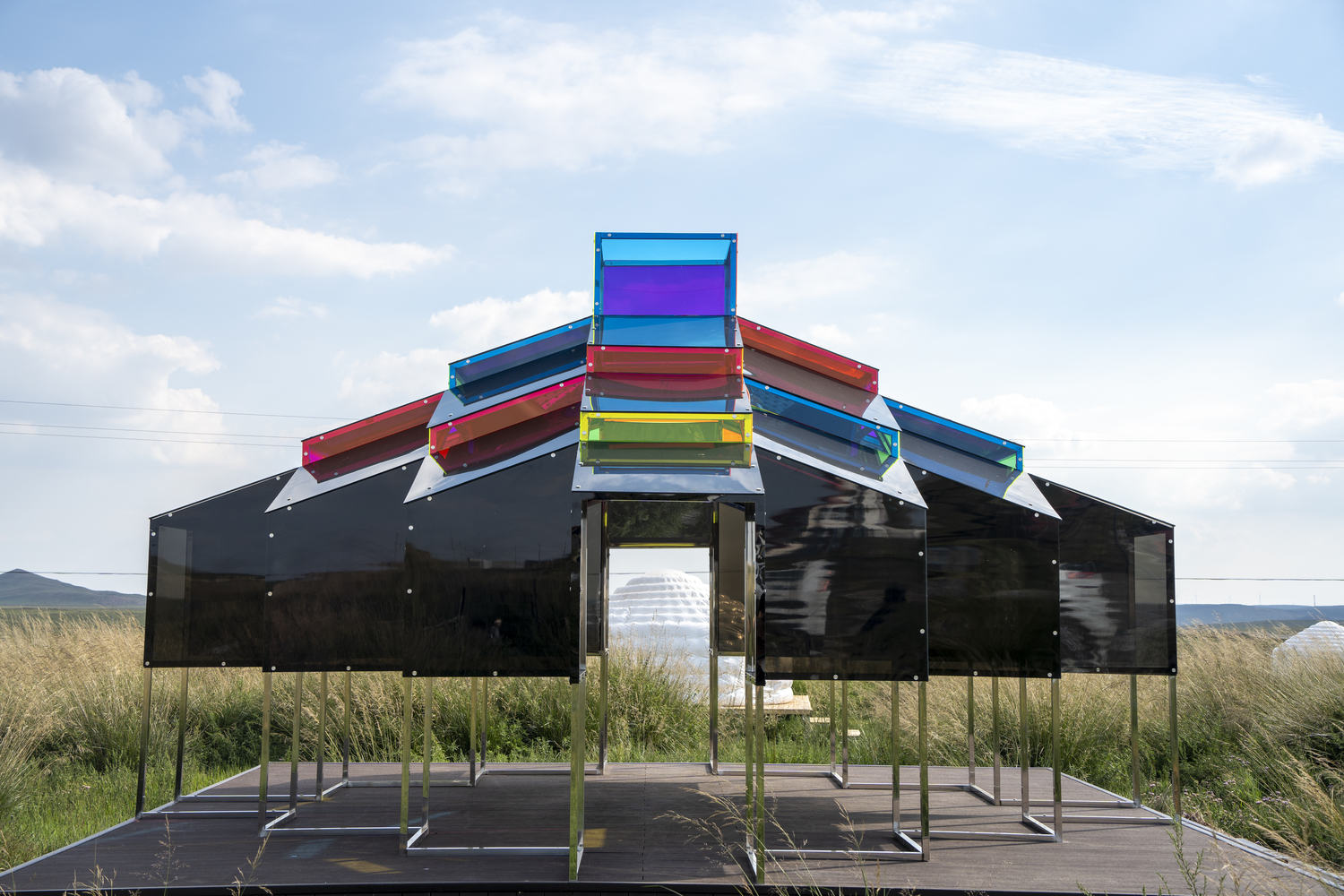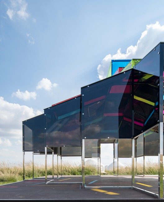 动态光影与空间叙事的有机融合:项目在体验设计上极富创造力,通过彩色与深色亚克力的交错运用,使装置空间具备了“呼吸感”和动态性。随着自然光线和云层的变化,内部光影与色彩组合不断演变,超越了传统建筑的静态界限。这种动态的空间叙事,使建筑成为一个与环境实时互动的有机体,极大地增强了使用者与空间的互动性和感知深度,为现代装置艺术与建筑融合提供了鲜活的范例。