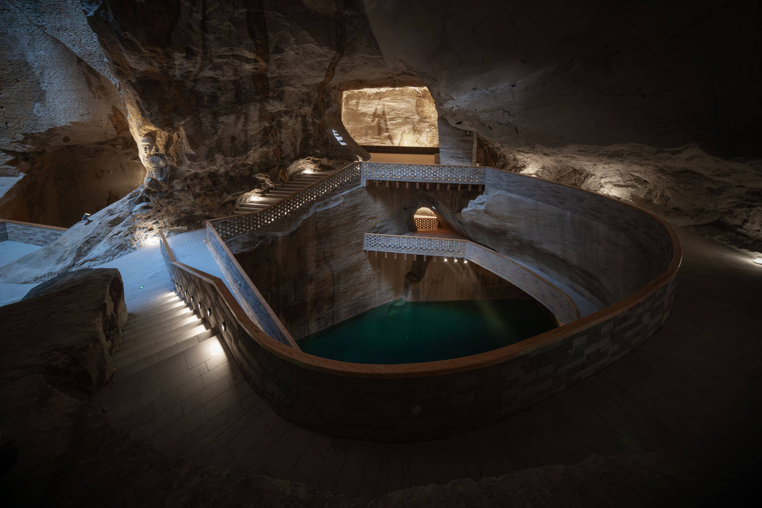 Cave No.3 consists of quiet spaces connected by a series of narrow tunnels. The modification of Cave No.3 utilized timber craftsmanship for the treatment of the openings in the cave ceiling, fulfilling functional requirements in the lightest possible way without damaging the original appearance of the grotto. Cave No.3 will serve functions such as a restaurant, café, and reception.
