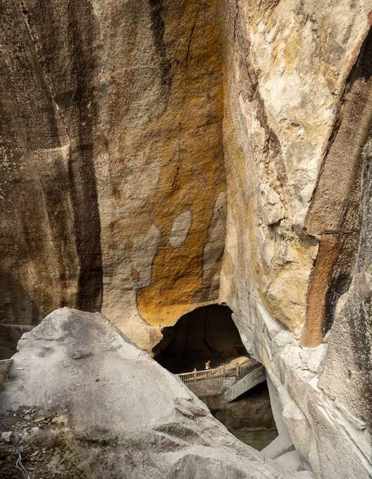 黄岩区,隶属浙江省台州市,位于浙江黄金海岸线中部,距机场 26 公里,距高铁站 5.3 公里,交通便捷。该地区拥有丰富的森林和矿产资源,坐拥“千年永宁、中华橘源、模具之都”三张金名片。黄岩石窟自唐上元二年(公元 675 年)由于永宁县城及府城的建设而开始在此地大规模采石筑城。后经年复一年的采石活动,形成了这些百米高,既深又大的石板仓和几十个洞穴,相环拱而成的壮观的人工洞穴。洞穴内部由于从石头里渗透出的金属元素以及被挖空的山体内的水系,形成了全世界唯一的天然岩画景区和洞庭观瀑,碧绿水潭的独特景观。
