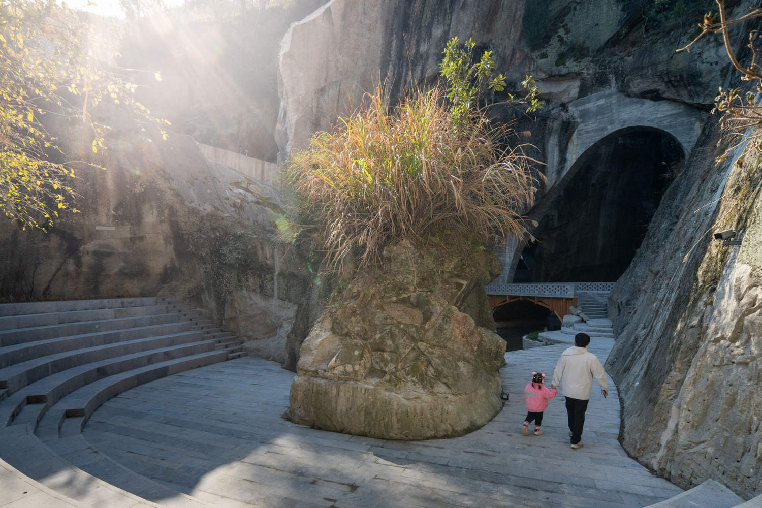 Huangyan District, under the jurisdiction of Taizhou City in Zhejiang Province, is conveniently located on the central gold coast of Zhejiang, 26 kilometers from the airport and 5.3 kilometers from the high-speed rail station. The region boasts abundant forest and mineral resources, holding the "Three Golden Calling Cards" of "Thousand Years of Yongning, Origin of Chinese Oranges, and City of Molds." Large-scale quarrying in the Huangyan area began in the second year of Shangyuan during the Tang Dynasty (675 AD) for the construction of Yongning County and Prefecture cities. After years of continuous quarrying, these spectacular man-made caves, hundreds of meters high, deep, and vast, formed a series of interconnected caverns. Inside the caves, metallic elements seeping from the stone and the water system within the excavated mountain body have created the world's only natural rock painting scenic area and the unique landscapes of the Cave Lake Waterfall and the emerald green pools.