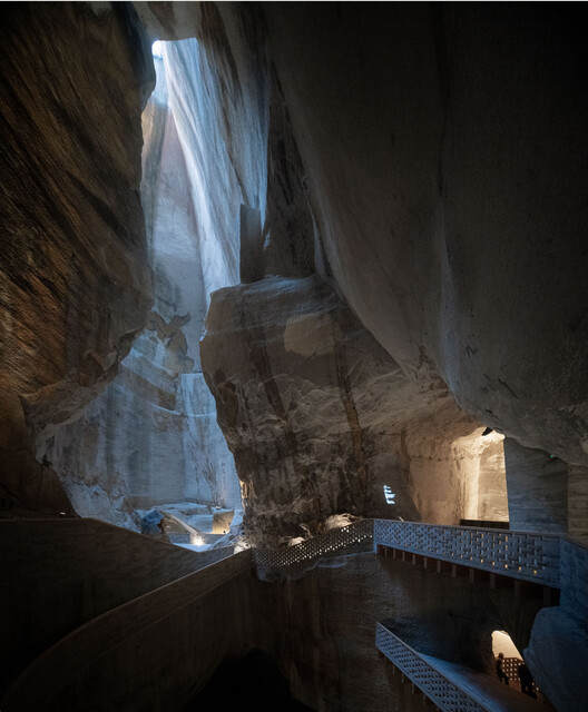 The tunnels originally connecting the three caves have also been repurposed as exhibition spaces, achieving the goal of reasonably utilizing the internal space of the quarry with minimal intervention.