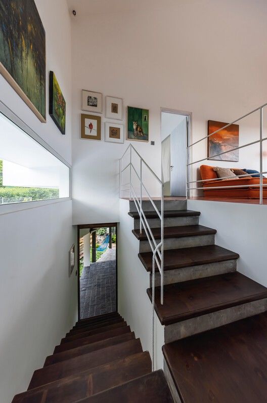 地形整合与景观最大化:该项目巧妙地将建筑体量顺应保禄市缓坡地形进行布局,实现了与自然环境的深度融合。设计核心在于最大化利用场地开阔的视野和葱郁的绿谷景观,通过精心设计的开窗和空间序列,确保建筑的每一个角落都能框取并展示自然之美,建立起建筑与环境之间无缝衔接的亲密关系。