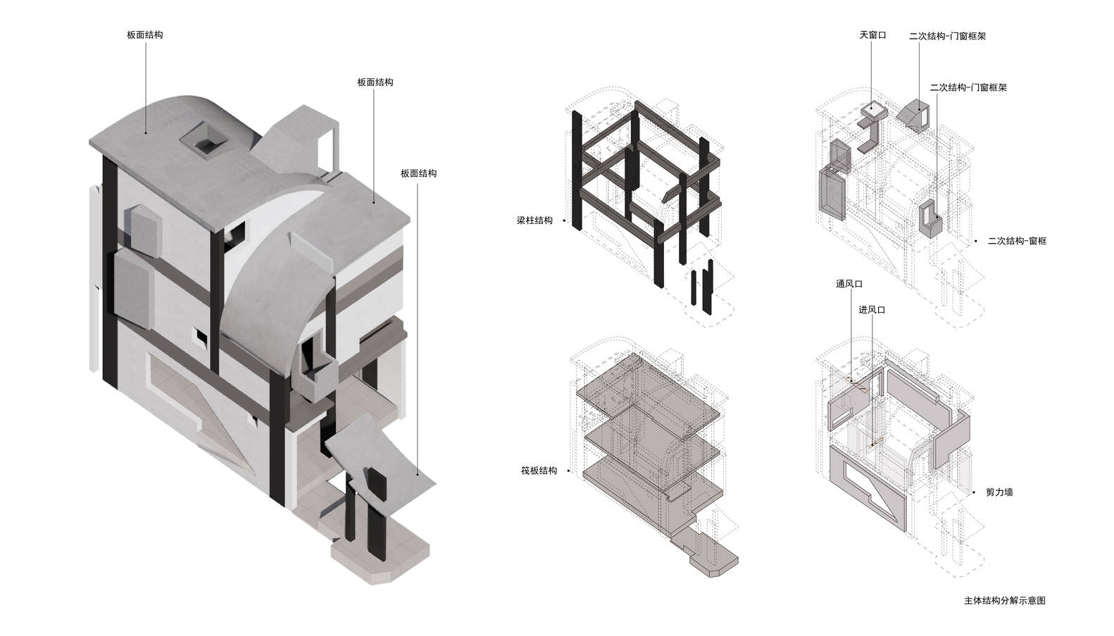 暗巧这次机缘,以惠州桥东老城这处 44 平方米坍塌祖宅重建项目,作为实践对象,在高密度城中村语境下,如何用建筑回应家族记忆、地域气候与复杂的邻里关系。项目面对极限的空间条件,用“时间剖碎”、“微景框借”、“呼吸建构”与“材料诚实性”的方法,对抗常规的封闭速成模式,将建筑锚固于场地历史纹理之中,并将 “爬梯”、“中心柱”、“谷仓”“园池” 等空间原型进行当代转译,设计保留并重构老墙、用弧形屋顶消解压迫感,以及建构微缩园池等方式,在方寸之地筑建一个连接过去与现在,兼具日常性与精神性的“文化原乡”。实践当下城市的微更新与社区提供一种基于人文出发与精细设计的新尝试。