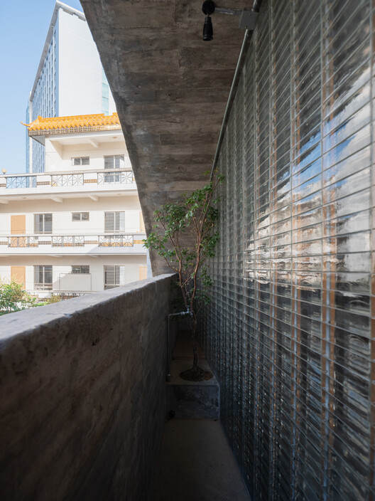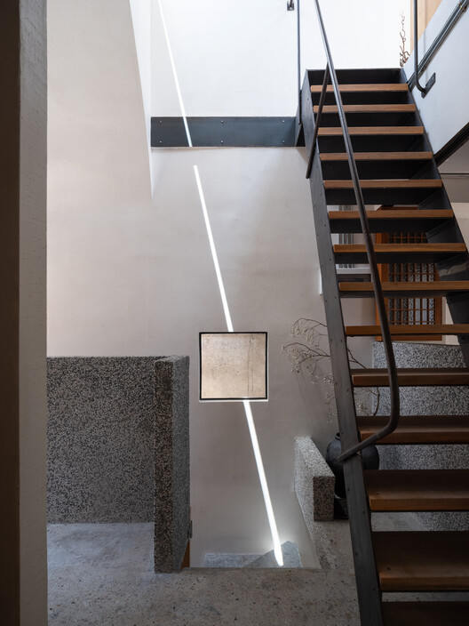 Cautious slicing and new "hollowing out" operations were performed on the preserved old walls. These openings vary in size, shape, and height, serving multiple functions: Firstly, to introduce light, allowing natural light to act as a brush tracing time, casting flowing shadows indoors; Secondly, to guide vision, forming a series of carefully framed scenes that bring the external greenery, sky, and shadows cast by the wall gaps into the interior view; Thirdly, to facilitate ventilation, in conjunction with the subsequent ventilation system. Thus, the old wall transforms from a closed boundary into a permeable medium connecting the outside and inside, the ancient and the present.