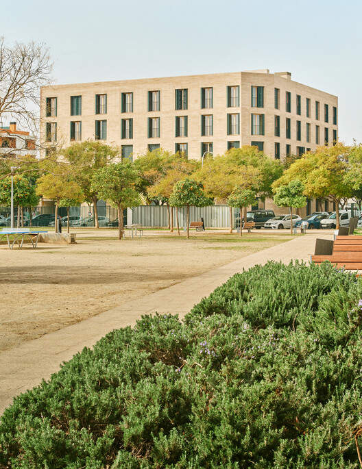 以人为本的邻里渗透与空间序列设计:项目在内部空间组织上极具匠心,通过入口大堂导向内部庭院,再经由有顶走道连接各个单元,构建了一个清晰而富有层次感的公共-半私密-私密空间序列。这种布局不仅促进了邻里间的良性互动,更通过双朝向、无走廊的单元设计和中央厨房的视觉联通,提升了居住体验的开放性和效率。此外,西南向的多功能走廊作为缓冲带,巧妙地调节了私密性、采光和通风,体现了对地中海气候精细化的被动式设计策略。