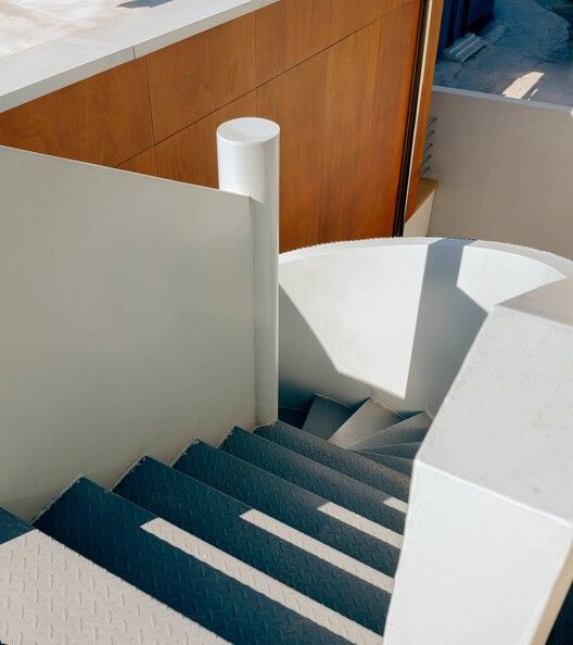 多功能复合与空间弹性设计:该项目最精髓之处在于其对未来不确定性的前瞻性应对。建筑被巧妙地设计成一个可灵活转换的“组合大柜”,无缝集成了居住、办公、展示乃至潜在的商业租赁等多种功能需求。通过反转传统的“房包院”格局,集中体量并以退台式设计创造私密露台,确保了居住的舒适性与私密性。同时,通过设置独立出入口和灵活的大空间布局,实现了办公功能与居住功能的有效区隔与切换,体现了极高的空间适应性和设计前瞻性。