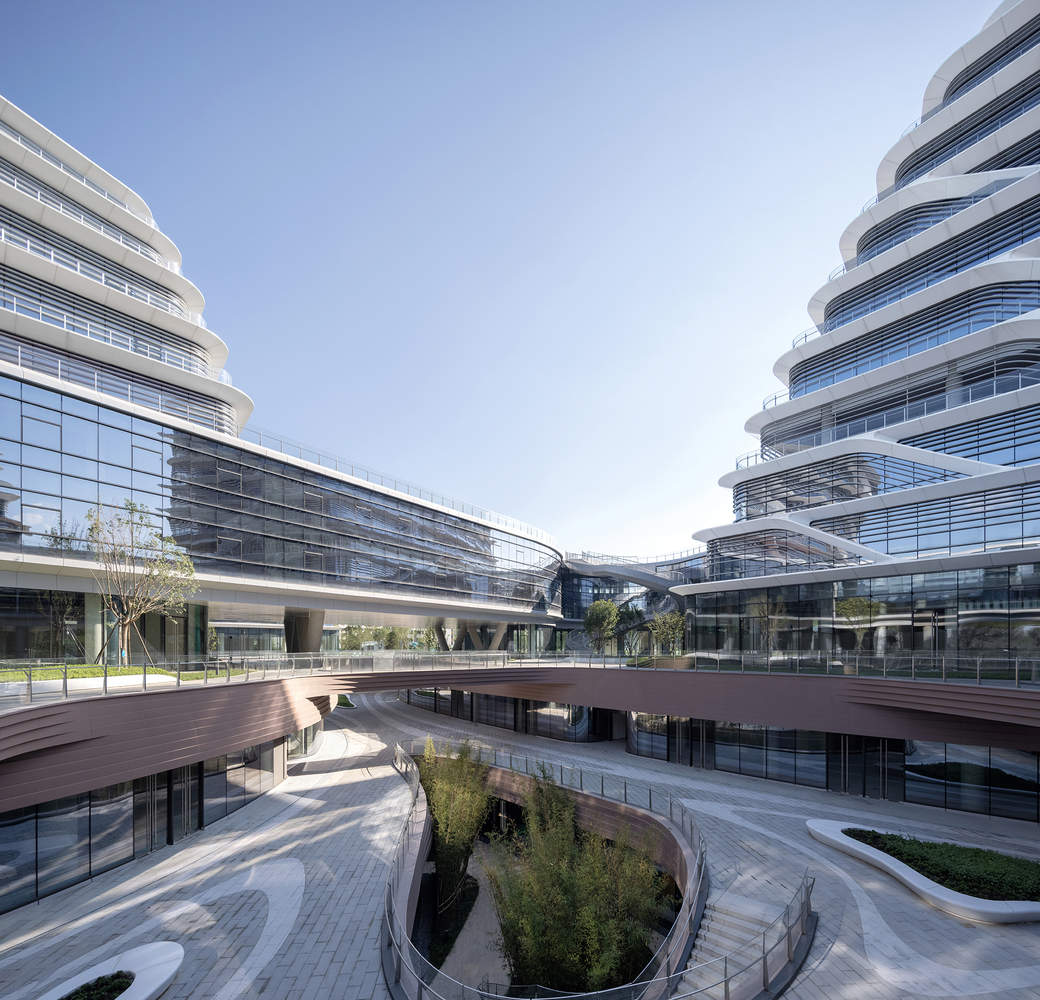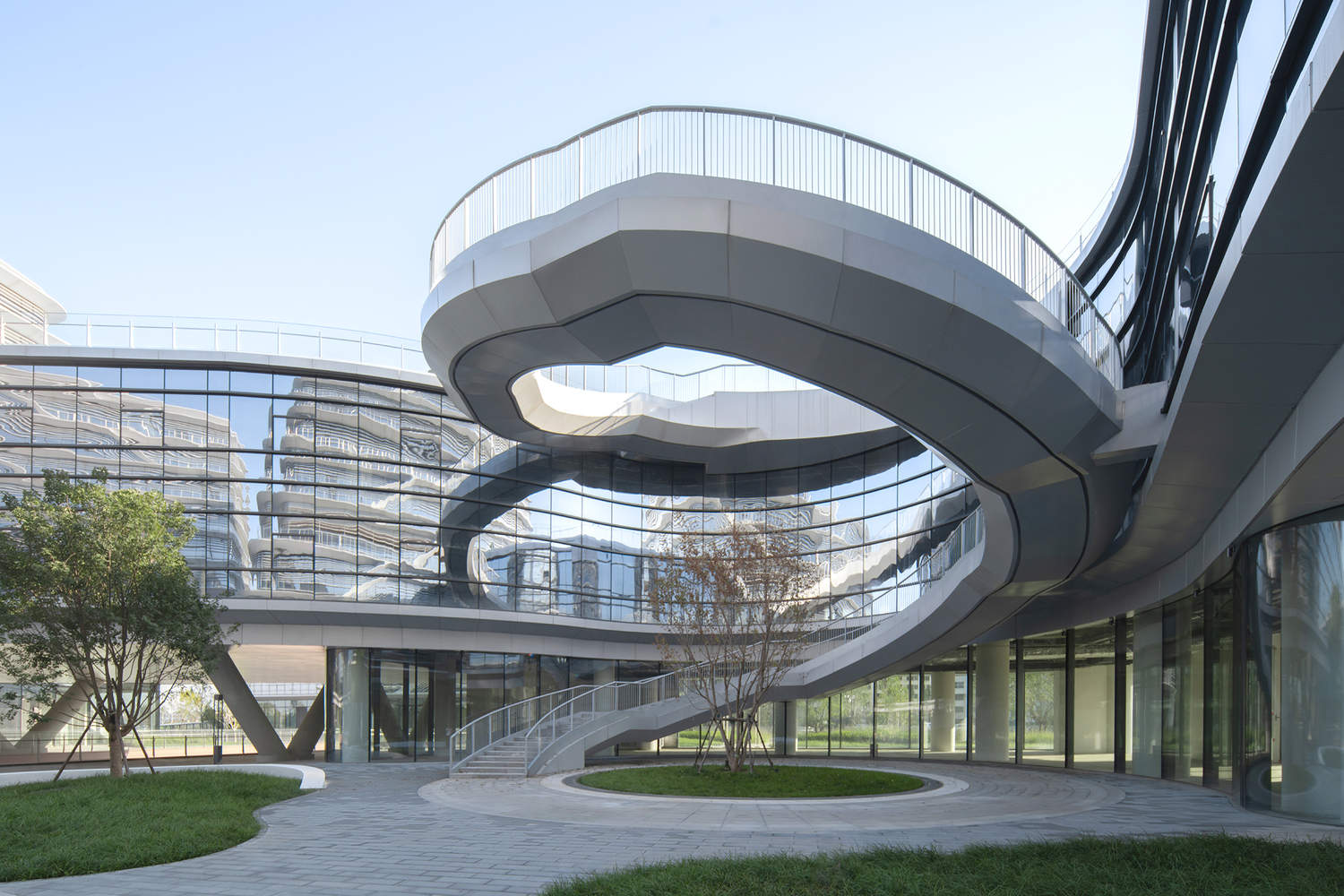 “山水之谷”与“东方未来主义”的融合:本项目最精髓之处在于CAA建筑事务所提出的“东方未来主义”核心理念,并以一条贯穿地块的“山水之谷”作为设计轴线。这不仅仅是形式上的模仿,更是文化精神的在地化表达。通过将西山、香山群山的自然禀赋与“三山五园”的历史文脉相结合,设计成功地将传统的东方山水意象转化为具有未来感的建筑形态。这种处理方式使得项目在承载高科技创新功能的同时,也深刻植根于北京独特的地域文化和哲学思想,实现了人文精神与前沿科技的有机统一。