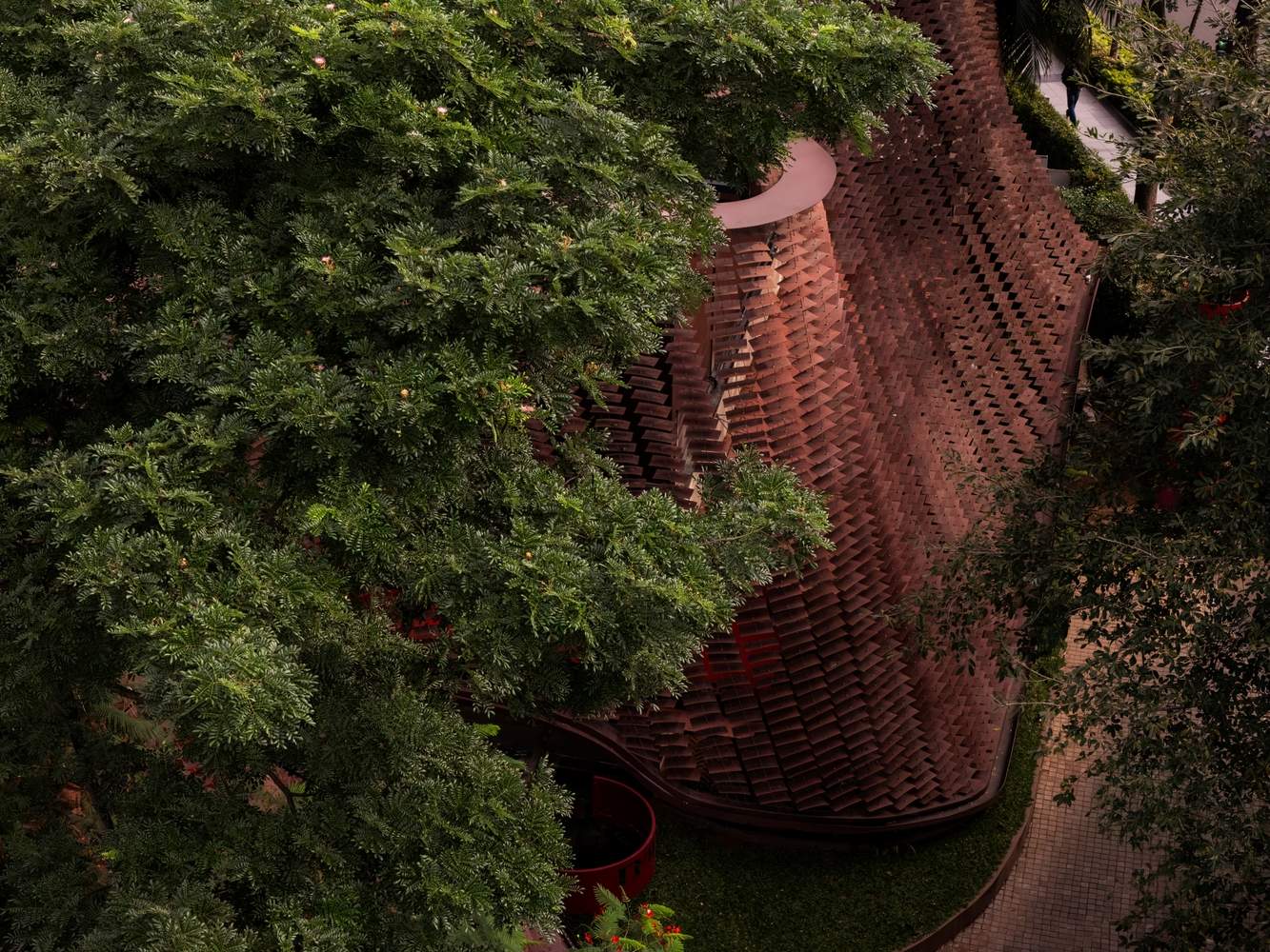 By separating the facade to create ventilated corridors and thermal pressure channels, and replacing mechanical lifts with winding garden ramps, the design challenges conventional vertical circulation patterns. The result is a significant reduction in reliance on air conditioning and elevators. It stands as a beacon of hope, demonstrating that economic gains in developing economies do not necessitate sacrificing environmental adaptability.