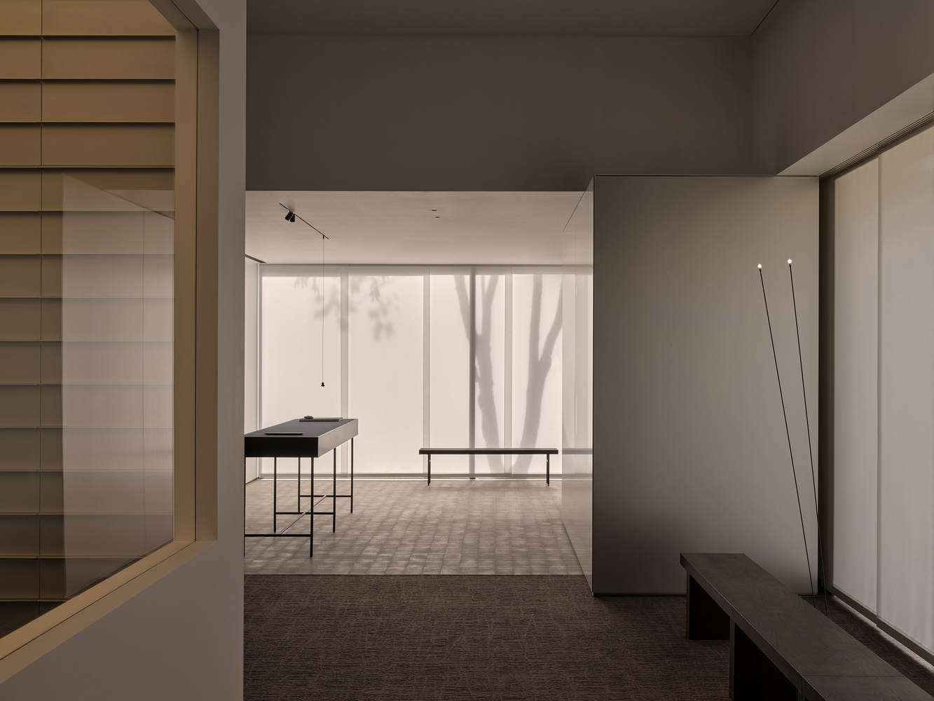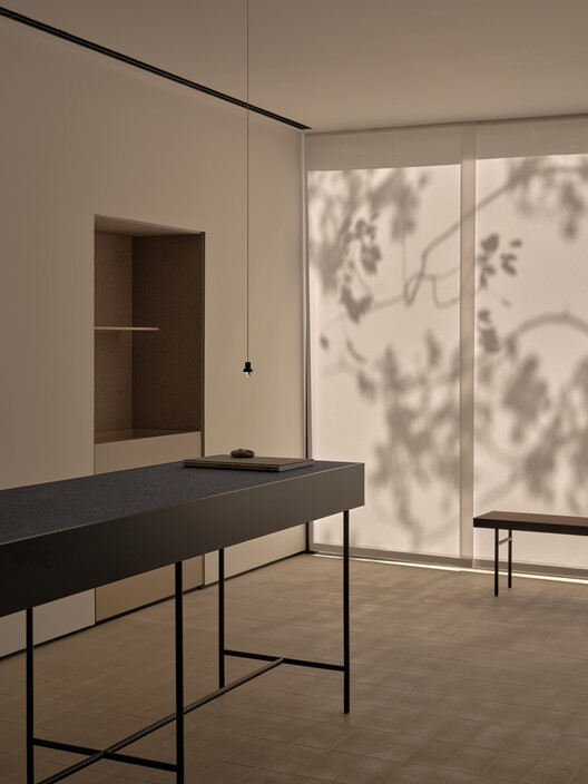 The interior walls of the exhibition hall utilize the Kvadrat Acoustics system, integrating application, shape, and acoustic function to achieve the widest possible seamless treatment, providing an extremely quiet spatial state. This responds to the brand's attribute of "precision" products and also achieves the strictness and craftsmanship expressed in the spatial concept of "Zou" (The Ways of Crafting).