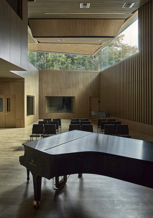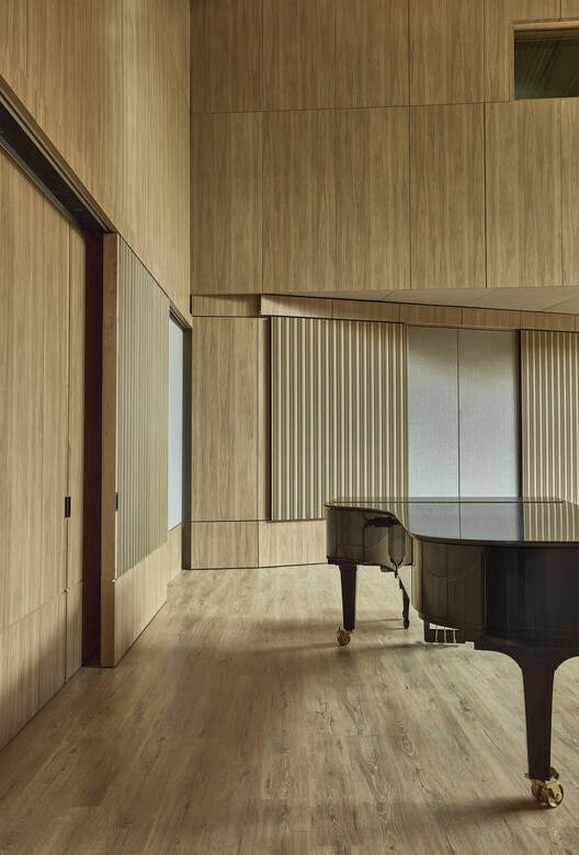 上层包含流通区、控制室与公共空间,促进音乐家与建筑师间的互动。“我们希望它成为一个学生可以非正式会面的地方,声音不会被封锁,而是可以流通,”海梅斯解释道。中央空腔作为不同楼层间的共鸣腔,根据时间或活动类型营造出充满活力与变化的环境。