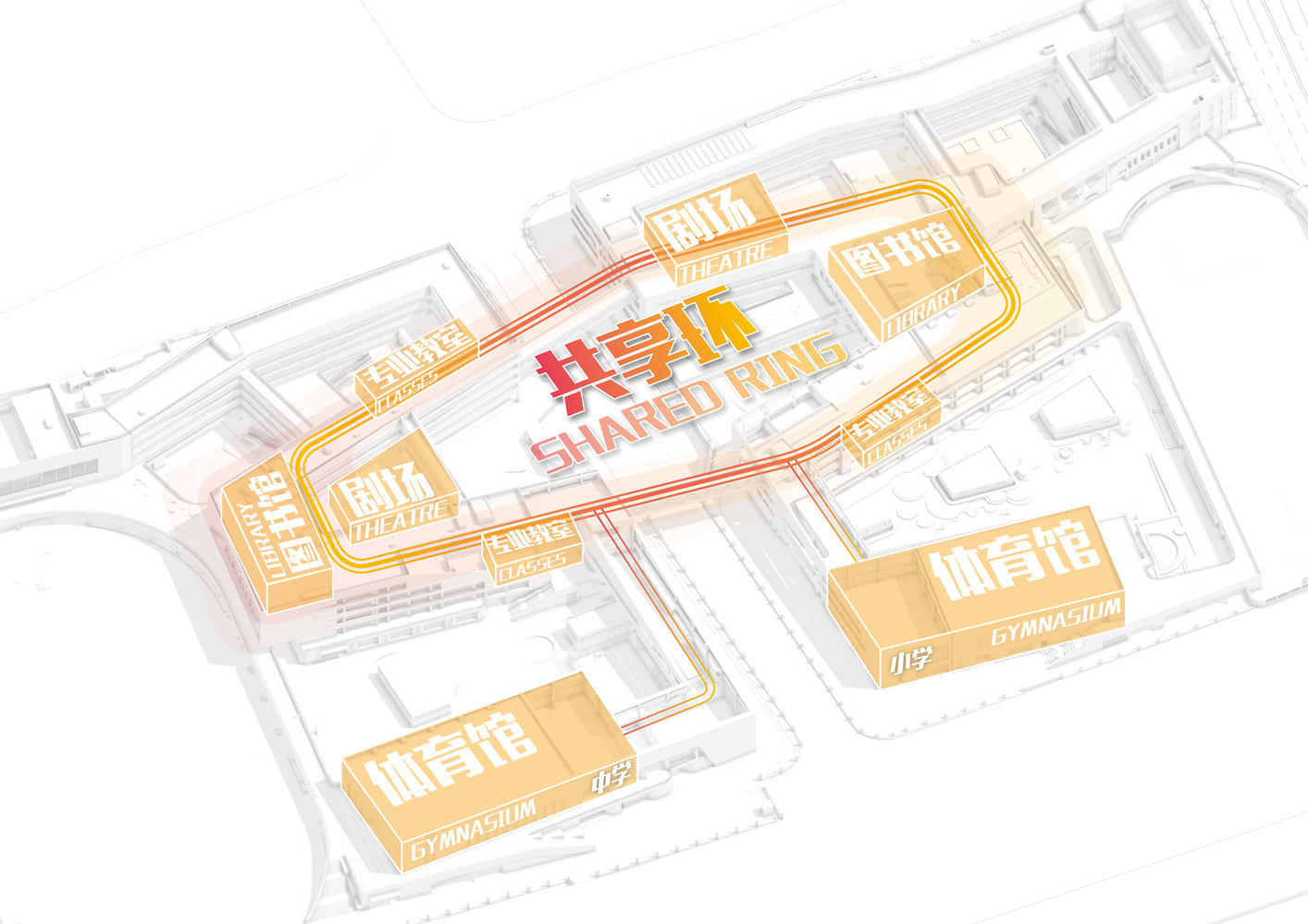面对地铁线横穿校园的先天限制,我们化制约为机遇,通过创新性布局与灵活的空间策略,在满足所有安全规范的基础上,成功打造出一座集共享、高效与活力于一体的现代化校园。这一设计不仅突破了基础设施的桎梏,更开创了“轨道+教育”融合发展的新模式,期望能够为未来城市与教育空间的共生提供富有价值的实践范本。