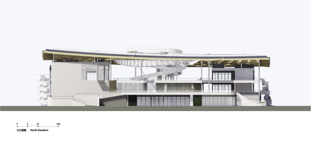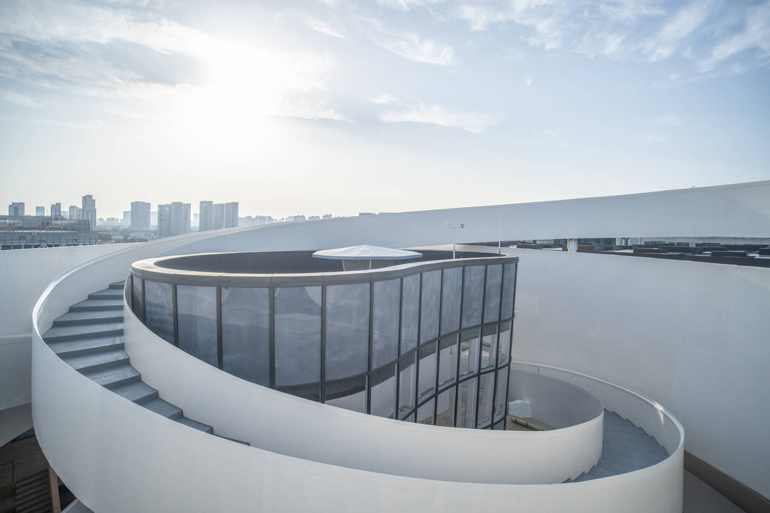 双螺旋坡道串联立体游览路径,建筑技术设备成为日常体验的一部分。市民在行走中近距离观察屋架、设备、光伏构造,建筑如同一枚透明的表盘,展示出的设备和构造细节如同表盘中的齿轮和螺丝,是其整体形态中不可分割的一部分,也是实现其性能至关重要的一部分,将低碳理念转化为直观可读的空间语言。