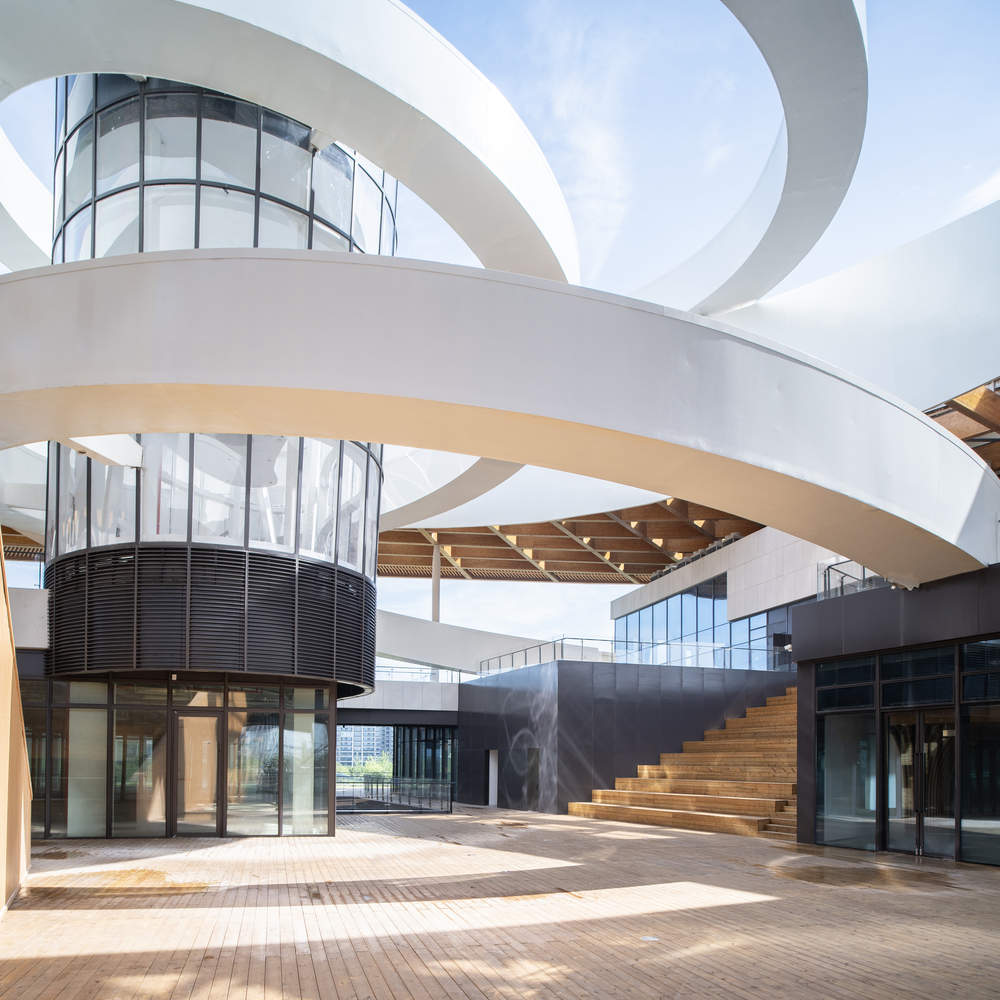 In the city of Jiaxing, crisscrossed by rivers and connected by nine waterways, this peninsula site, bordered by water on two sides, was dedicated to a public-facing cultural center within the High-Speed Rail New Town. During the first site visit in 2020, the site still retained open waterfront views and wild ecology, while the surrounding new town development was still brewing. How to avoid large public buildings obstructing the waterfront, and instead actively yield the waterfront, became the starting point for the design. The owner's expectations for the cultural center covered a variety of usage scenarios, resembling a miniature silhouette of the city: artistic performances, planning exhibitions, film salons, citizen forums; restaurants, cafes, bookstores, cultural and creative shops, interest classes, musical instrument stores; gatherings with friends, strolling with children, shopping and sketching, sightseeing check-ins, impromptu performances, street flash mobs, weekend markets… When these life scenes unfolded, like seeds scattered on this special site, the challenge was how to sprout into an interesting, functional, open, and inclusive building.