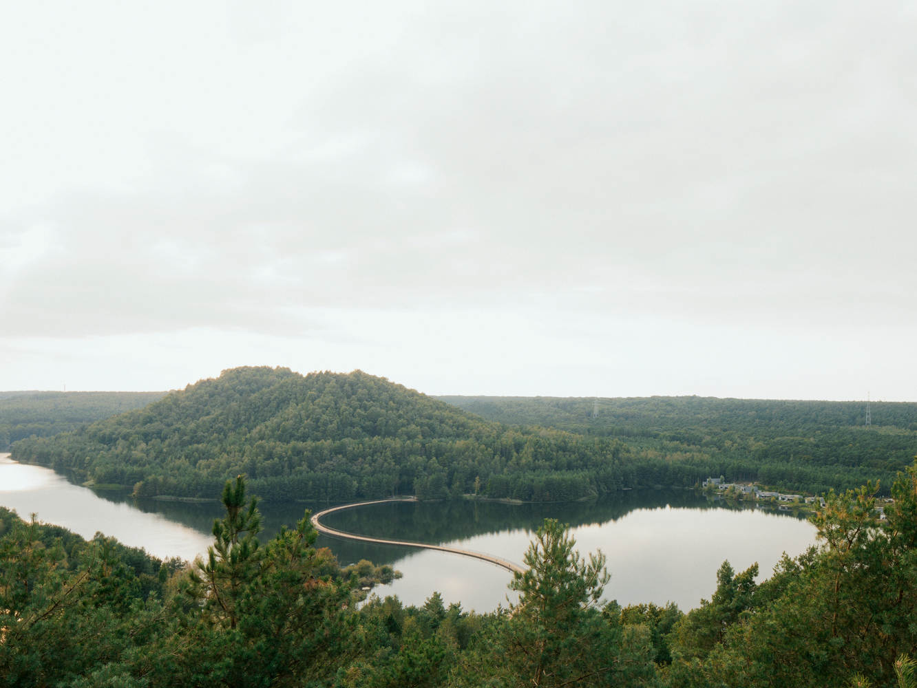 “煤渣山间骑行”是一座横跨两个具有显著采矿历史市镇边界的浮桥。20 世纪,该地区因地下煤炭开采而发生巨变,形成了这些矿渣堆。后来,该区域又开采了砾石,在两座矿渣堆之间形成了一个大型水池。几十年来,所有这些采矿活动显著改变了地形,塑造出了一片独一无二的景观。如今,原材料已不再开采,但矿渣堆仍是林堡地区景观的标志性特征。从 21 世纪开始,这片景观被改造成了一个休闲与体验之地,骑行者和徒步者在这里扮演着重要角色。