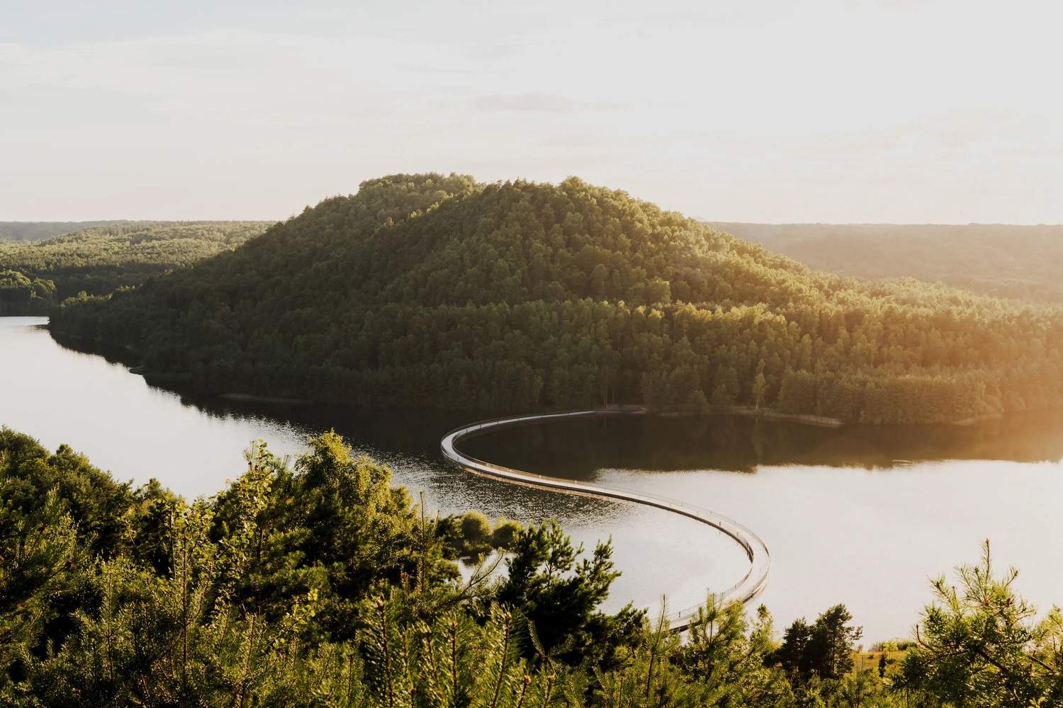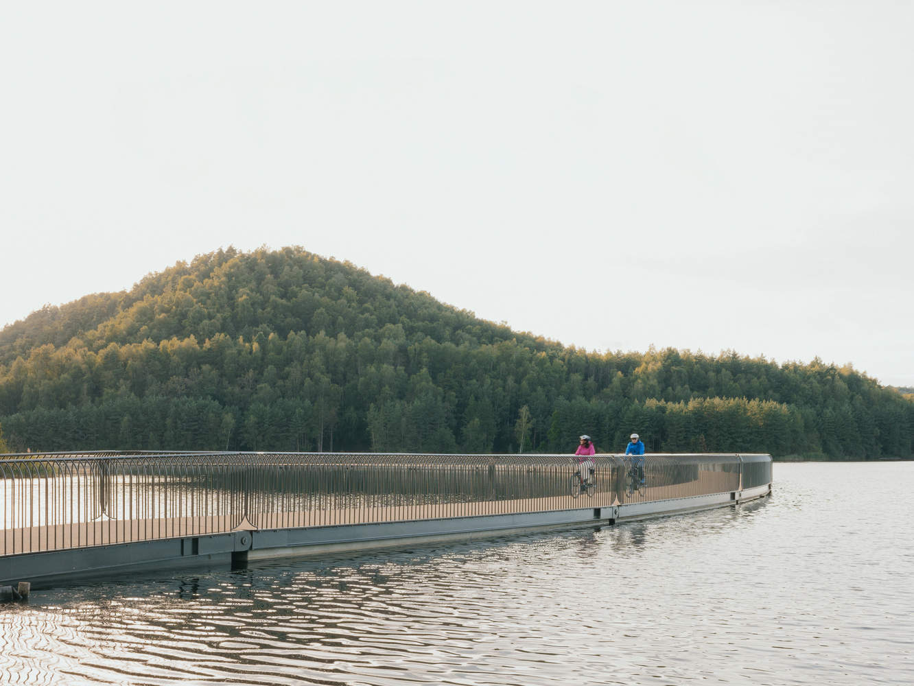 The former presence of the coal mine is still clearly visible on the edge of the slag heaps, where a floating bicycle bridge now stretches, gracefully gliding over the pond between two slag heaps. "Cycling Between Terrils" symbolizes a strong connection between nature, heritage, and the future.