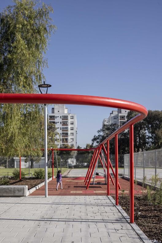 This project is part of a broader urban strategy to equip the surrounding environment with amenities. Set against a backdrop of stark territorial inequality, the plaza functions as a reparative measure, offering a tangible option for enjoying public space in a historically marginalized area. Through a participatory design process, with special attention to children and adolescents, this intervention transformed an empty lot into an open space prioritizing the right to play, gather, and rest.