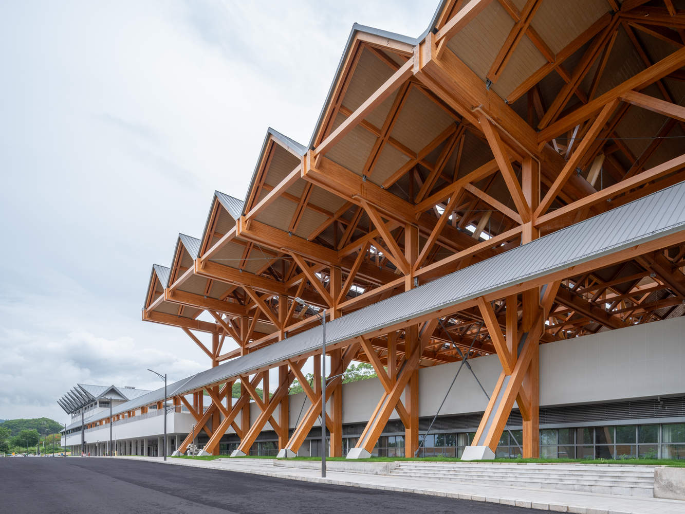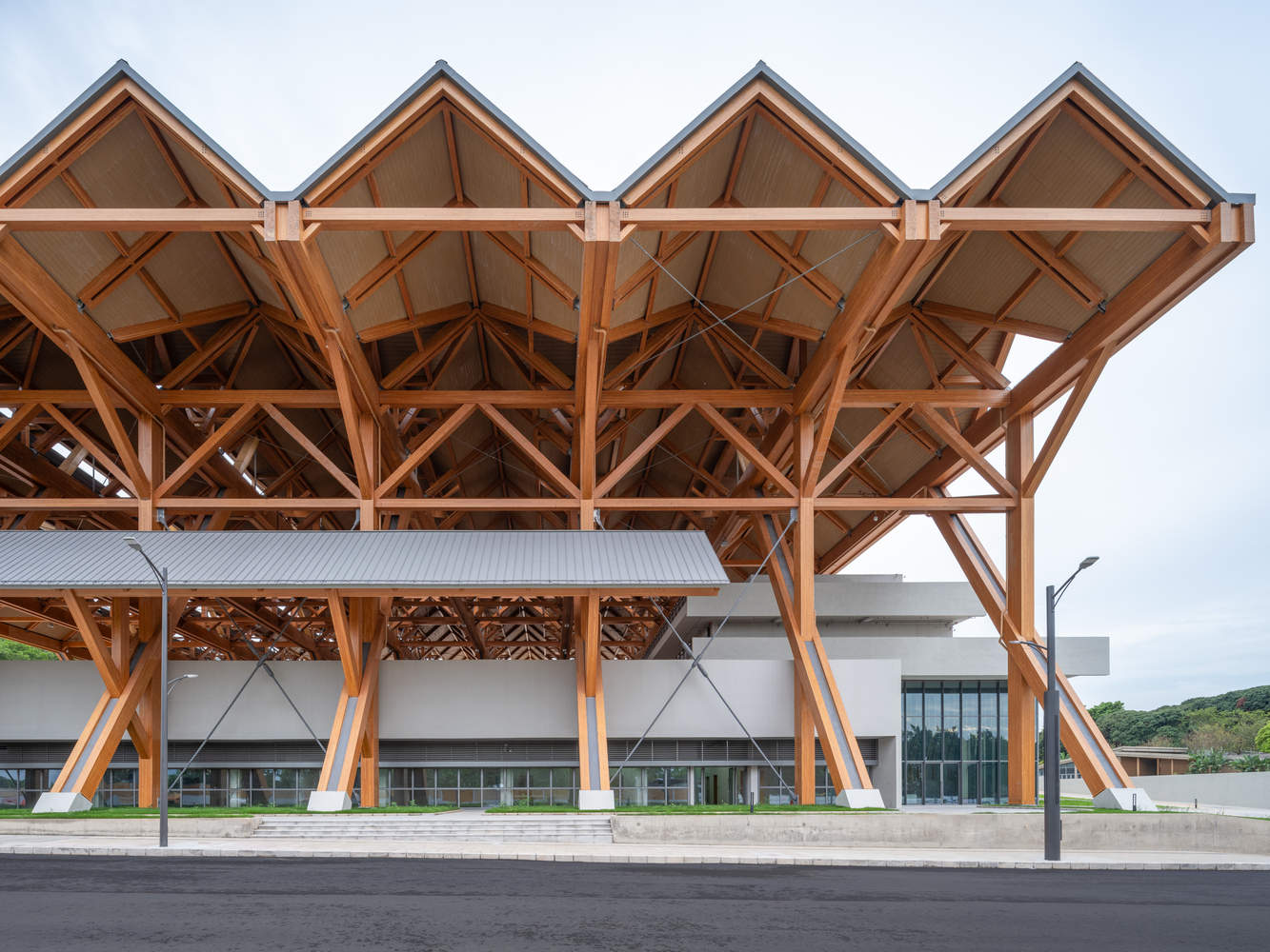 The main arena's design concept is "New Realm of Timber Structure, Shared Scenery of Eaves," employing a glued laminated timber structure throughout. The form is derived from the shape of traditional Chinese sloping roofs, retaining the characteristics of the original roof trusses while projecting outward with unconventional volumes, forming a dense, divergent pattern of "purlins" embedded with structural logic. This allows it to communicate with the modern context, showcasing the pure structural aesthetics and cultural meaning of timber construction.