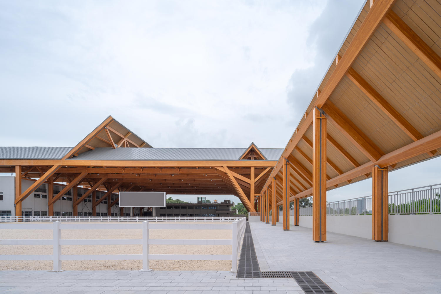 体验性空间叙事与环境共生:设计超越了传统单向的引导式观览,着力营造“体验性观览”空间,通过设置多尺度的“廊”连接不同高度的层次,让光、风、景得以渗透入建筑内部,创造出人与自然、马匹之间“偶遇”的文化意境。这种透明、流动的界面设计,强化了飞檐凌空的地域特征,实现了建筑与山体、风光之间的共生关系,成功唤起了观者对岭南乡土的记忆与文化共鸣。